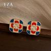 S925 Ayar Gümüş Yumurta Şeklinde Elmas Setli Yıldız Ay Damlayan Yağ İmitasyon Emaye Retro Sol ve Sağ Renk Asimetrik Çıtçıtlı Küpeler