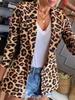 Kadın Modası Rahat Leopar Desenli Sonbahar Kış Uzun Kollu POLO Yaka Ceketler ve Montlar