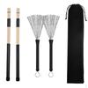 4 adet Caz Baget Seti 5A Akçaağaç Baget Bambu Çelik Tel Fırçalar ve Kadife Çanta Dahil