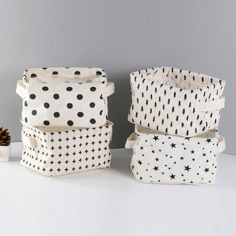 Cotton Linen Desktop Storage Basket Sundries Storage Box with Handle Linen Desk Container