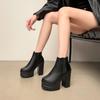 Moda Siyah Ayak Bileği Çizmeler Kadınlar Için Kalın Topuklu İlkbahar Sonbahar Akın Platform Ayakkabılar Yüksek Topuklu Siyah