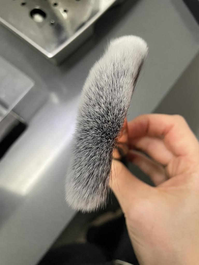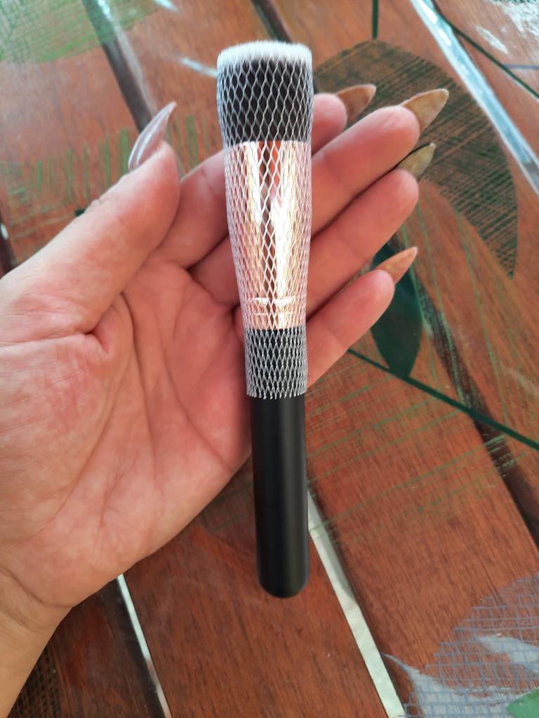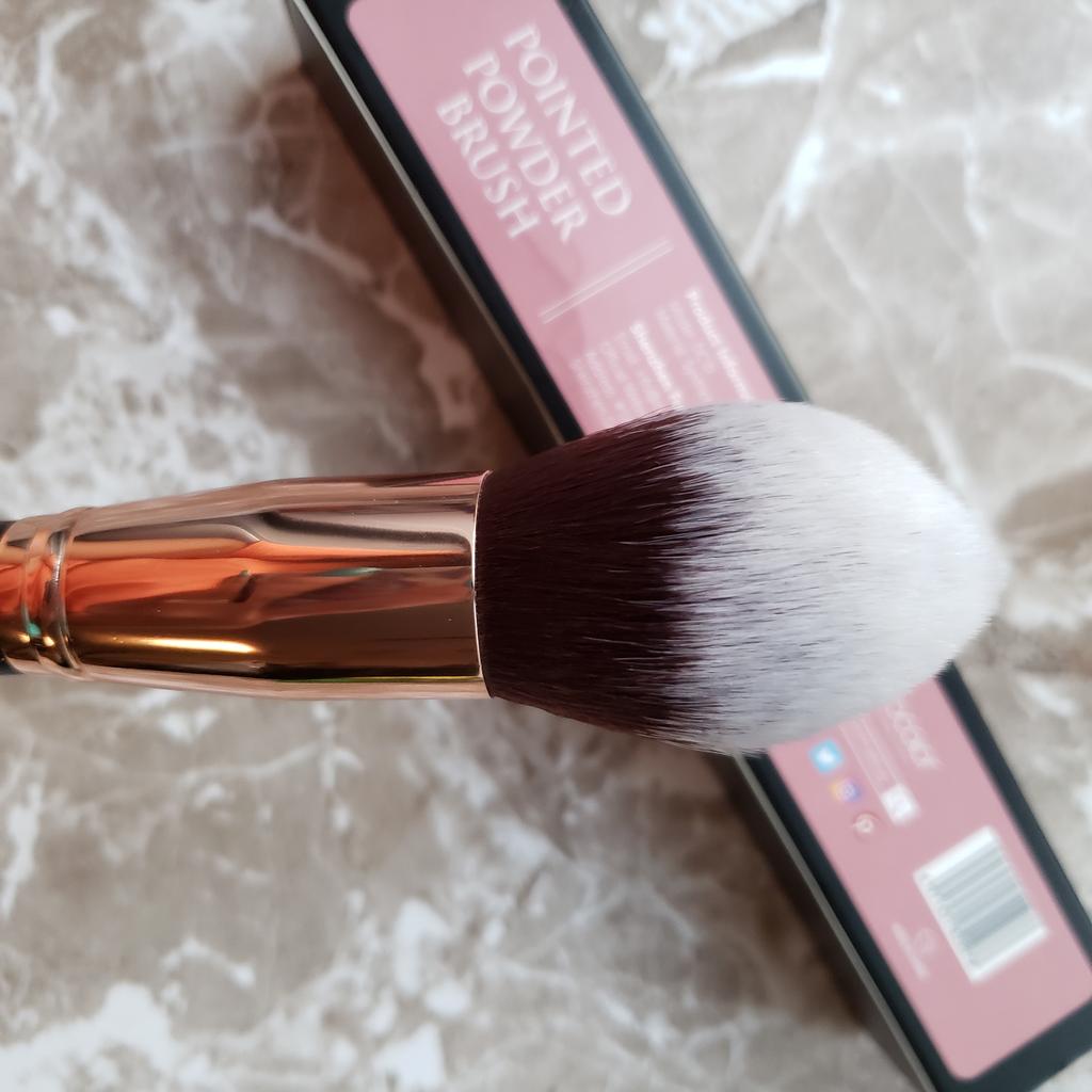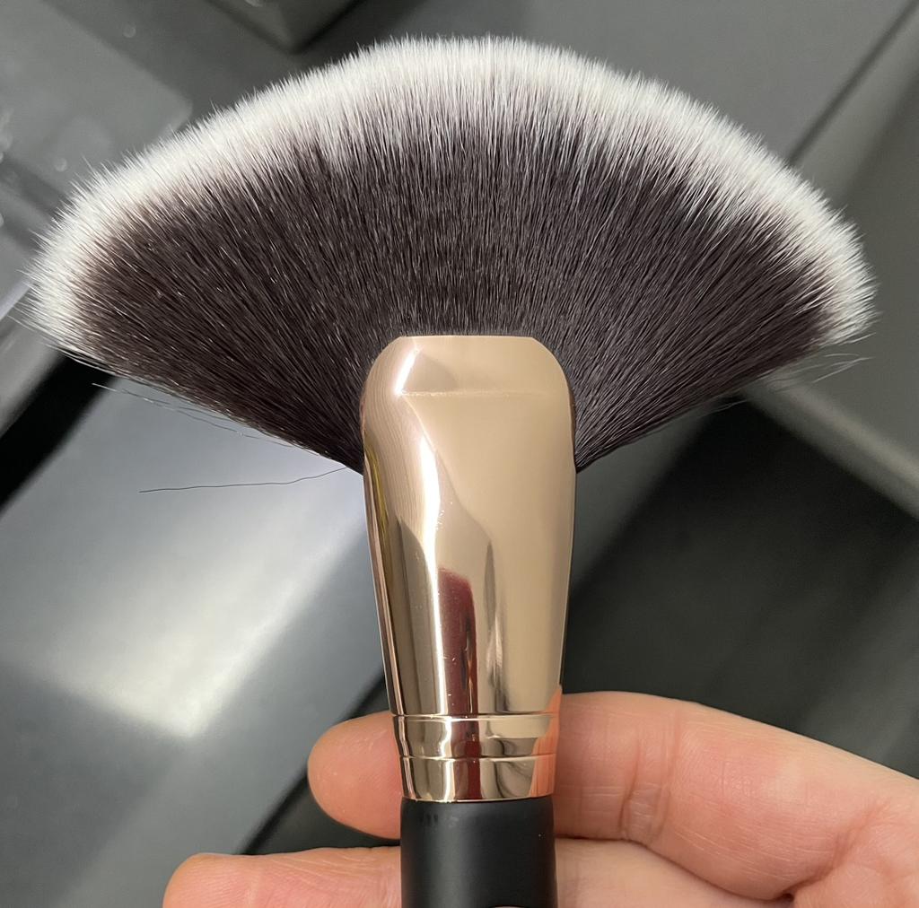 Arrived in about a month, bristles are very soft and they don’t fall out, the handle is very pleasant to touch and the weight of the brush is perfect, it’s not too heavy and it’s not to light. Very nice product. PS Love the brush. Perfect for foundation.