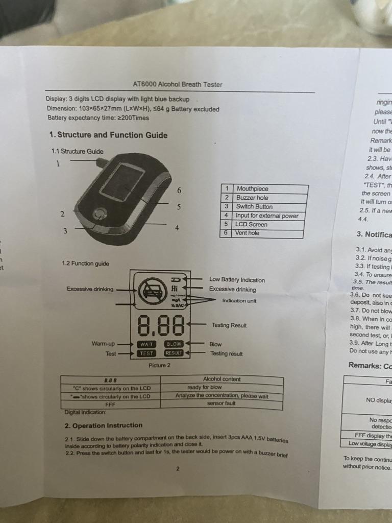 Algılama Aralığı: 0.00-0.20bac%; 0,00-2,00 g / l; 0.00-2.00bac ‰; 0.00-1.00 mg / l; 0.00-200 mg / 100 ml