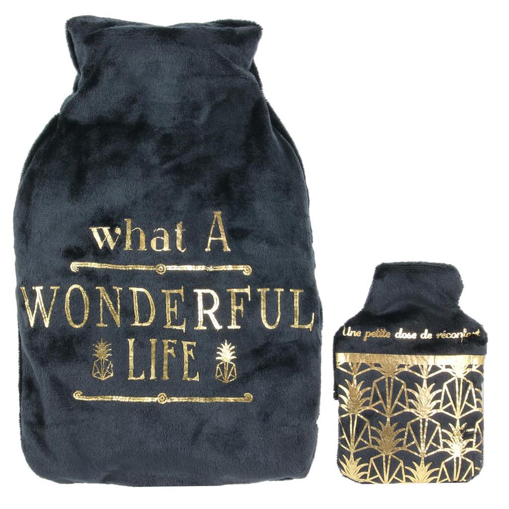 Les Trésors De Lily [Q4404] - Kadife Sıcak Su Torbası ve El Isıtıcısı 'Mesajlar' Siyah (Ne Harika Bir Hayat) - 26x16. 5x4. 5 (1L)