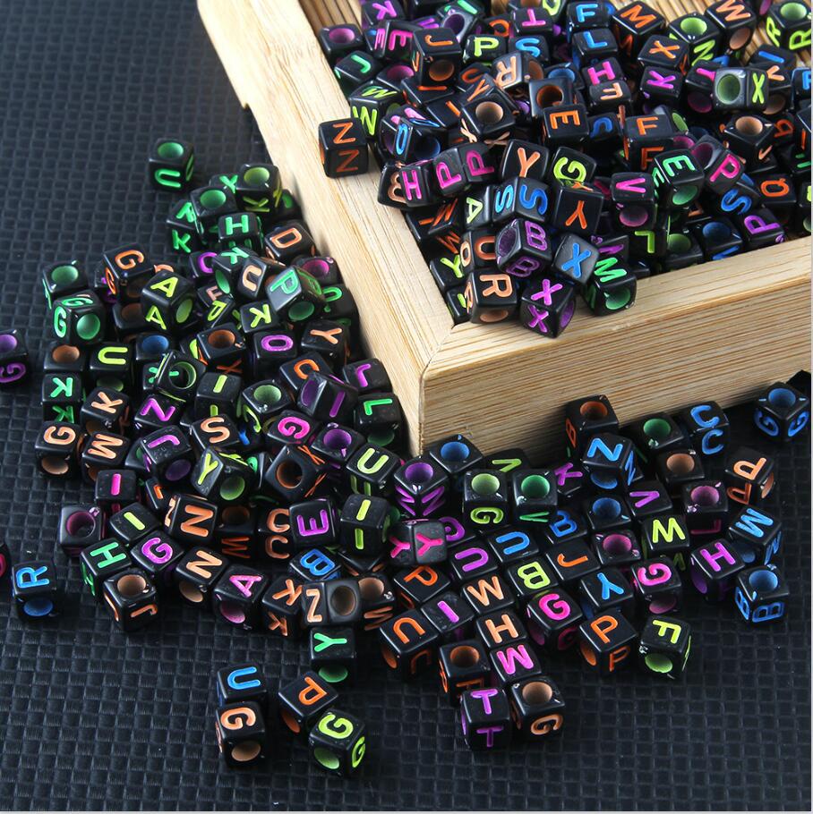 100pcs/lot Mixed Acrylic Square English Alphabet Letter Beads Charms Bracelet Necklace For DIY