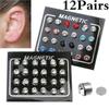 12 Çift Karışık Boyut Çok Renkli Kristal Rhinestone Manyetik Küpe Kulak Damızlık