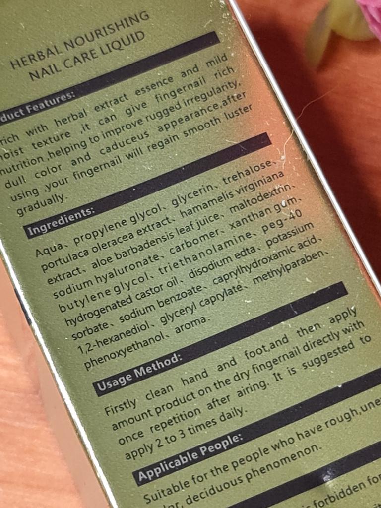 This nail oil treatment is good! 😁 After years of nail varnish on, I've decided to give my toe marks a break and take some care of them. This is why I went for this mail oil. Because it's based on herbs and doesn't seem to have any harmful ingredients, I expected my nails to welcome the treatment. 🌿💆🏻♀️ I've only used it for a week and my toe nails have anyway gotten more colour and look healthier!! 👩🏻⚕️ After showing , I apply some drops on my toe nails and spread the treatment across with my finger to make sure it covers all corners. The texture is nice , it doesn't really have a smell and it definitely didn't leave a greasy layer afterwards 😁 Given the price, I definitely recommend this nail herbal oil treatment to everyone 💯💯 Follow me on instagram @smileafteryoureadthis 📸 💛
