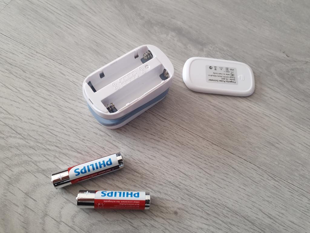 fingertip oxymeter measure how much oxygen is in your blood . 2 AA batteries needed , not included. easy to use delivered in 2 weeks