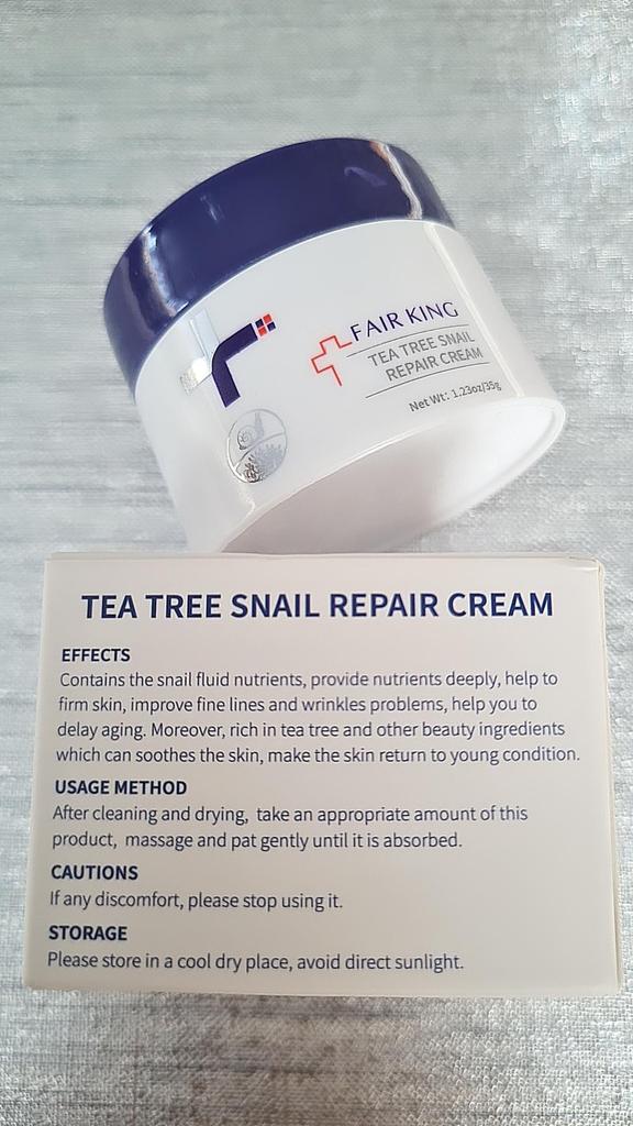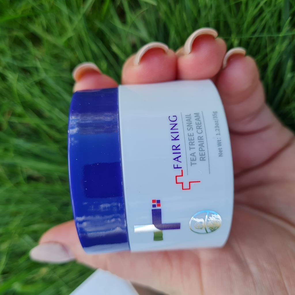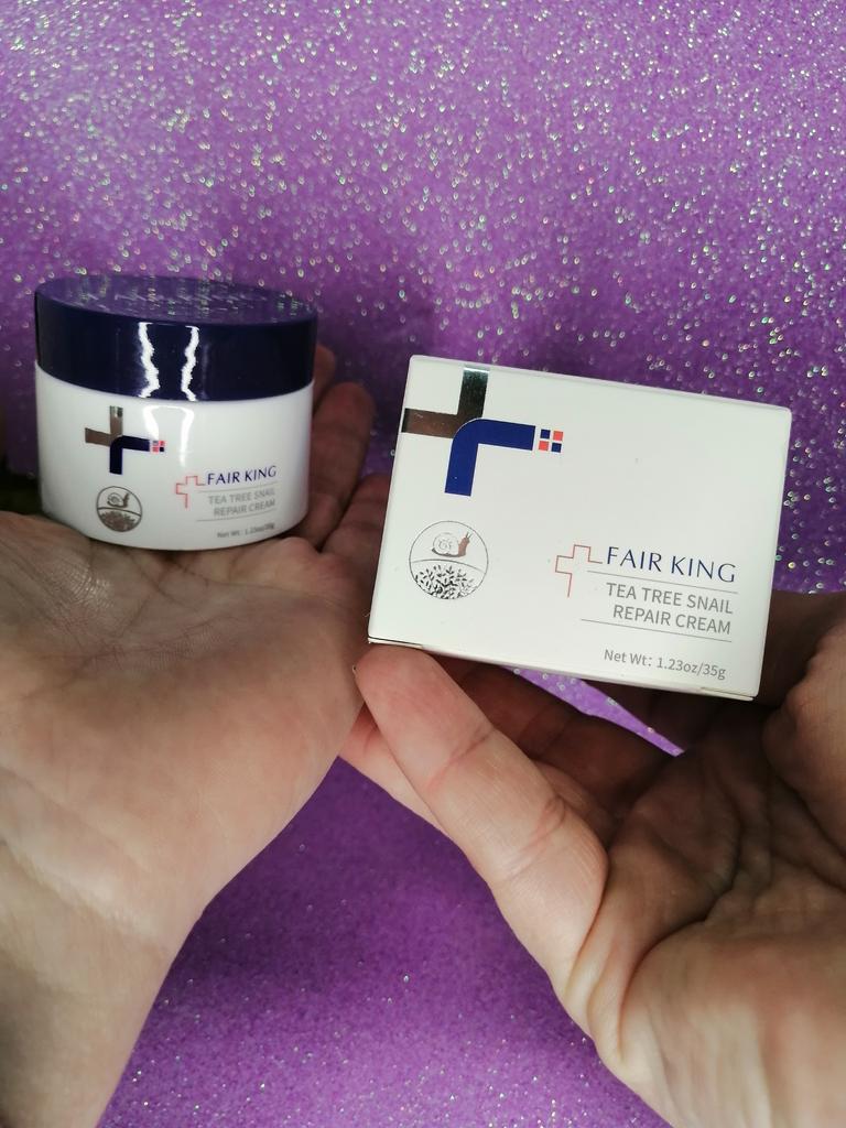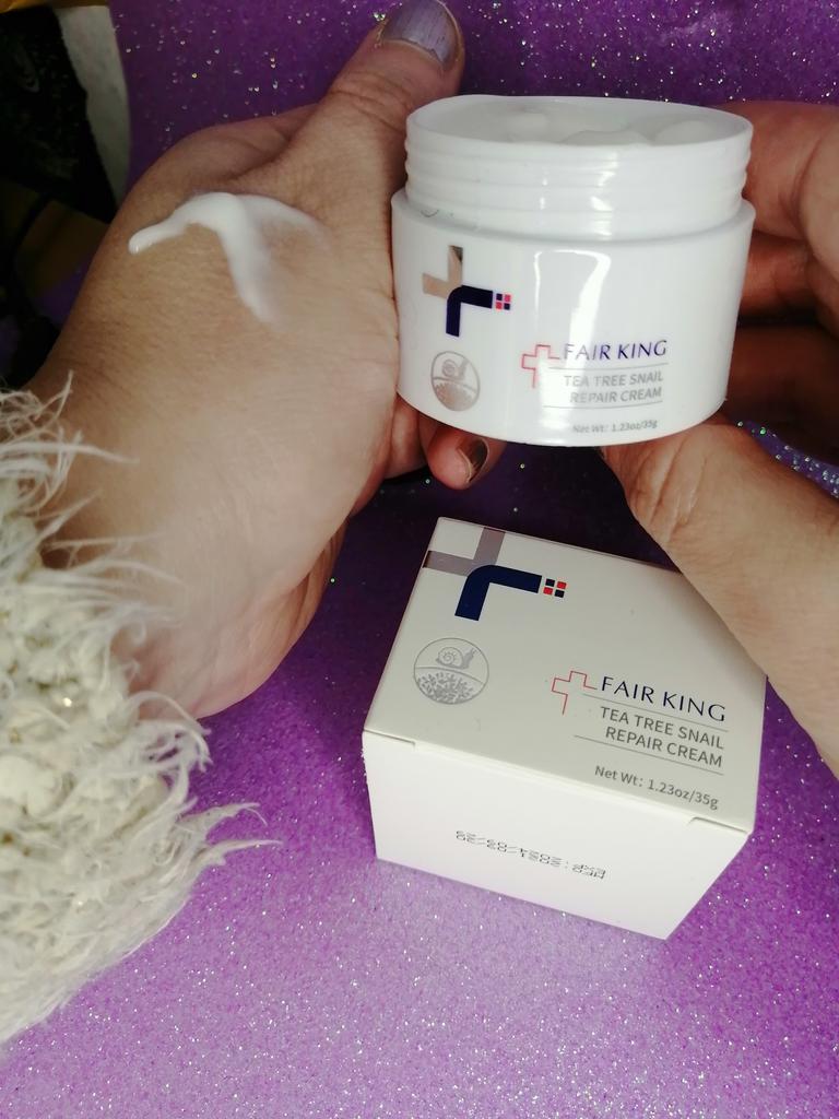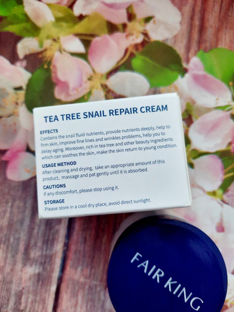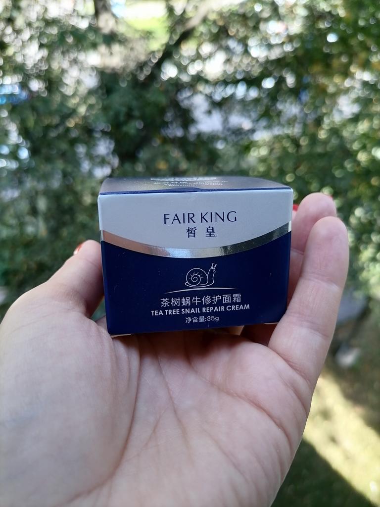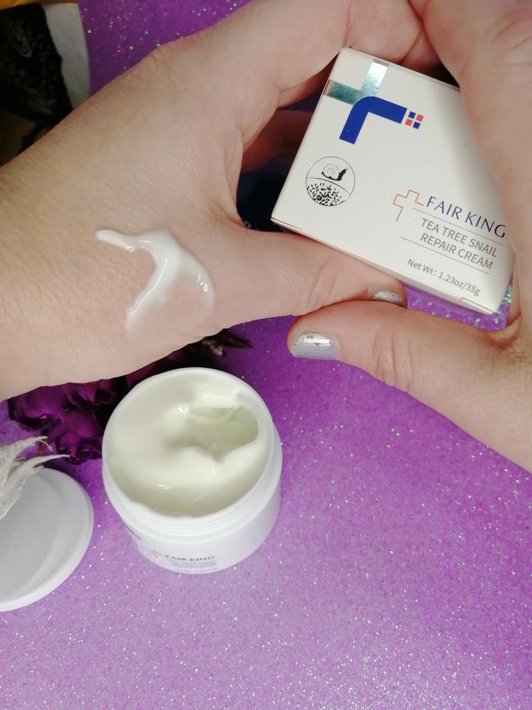 Tea tree & Snail Essence - Face Cream Brand: Fair King I was so curious about this facial cream, because it has a very interesting combination snail essence and tea tree. Tea tree is known for anti-inflammatory, anti-bacterial, anti-acne properties, it combats with oily skin. Tea tree oil can help soothe dry skin by reducing itching and irritation. Snail essence is rich in hyaluronic acid, and has been shown to exhibit antioxidant activities, stimulate collagen production, and enhance wound healing. 🔸anti-acne 🔸anti-aging 🔸moisturizing 🔸hyaluronic acid Cream has soft delicate texture. It smooths skin so well. It doesn't give greasy feeling. It is suitable for all skin types. Expiration date is 1 year later. I couldn't find the production date. It has 35g at total. If you have oily and you are around your 30s or more (mature skin), I recommend this cream. You're gonna like it.