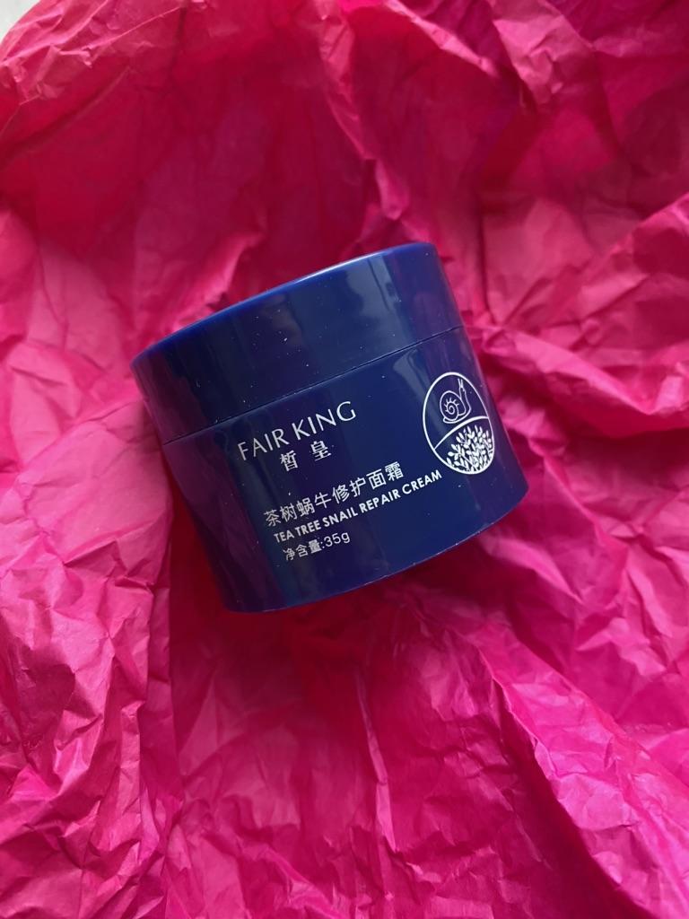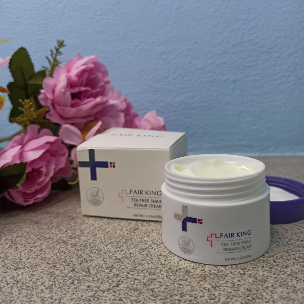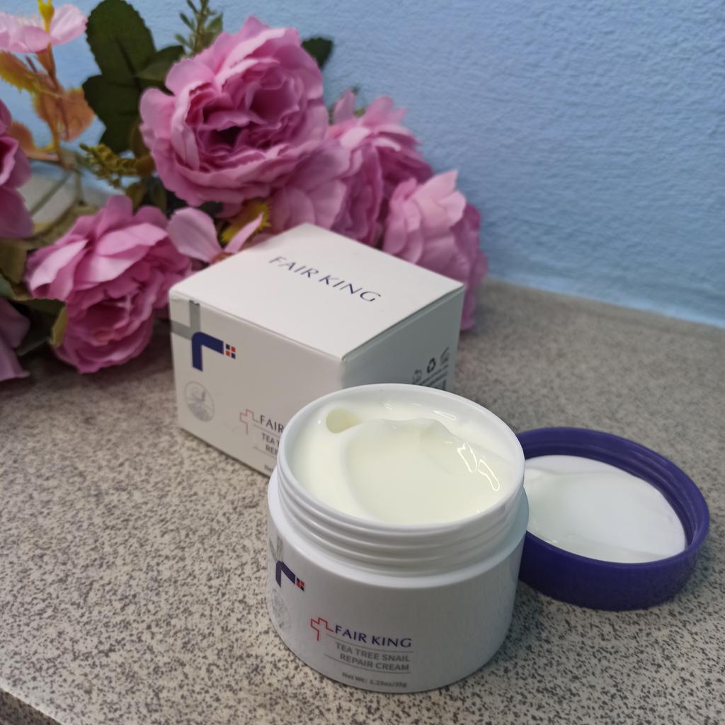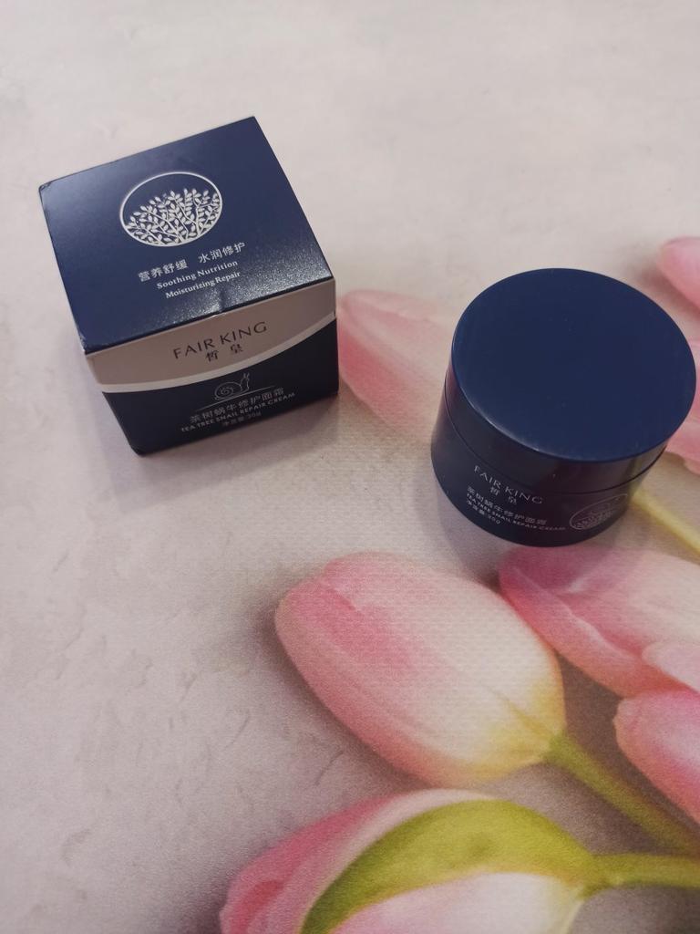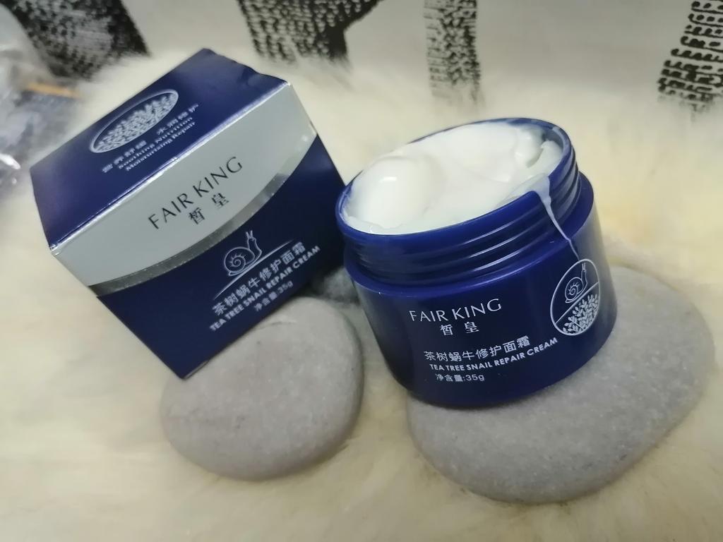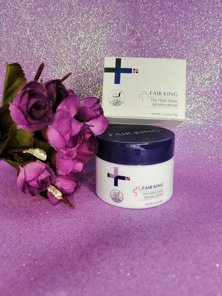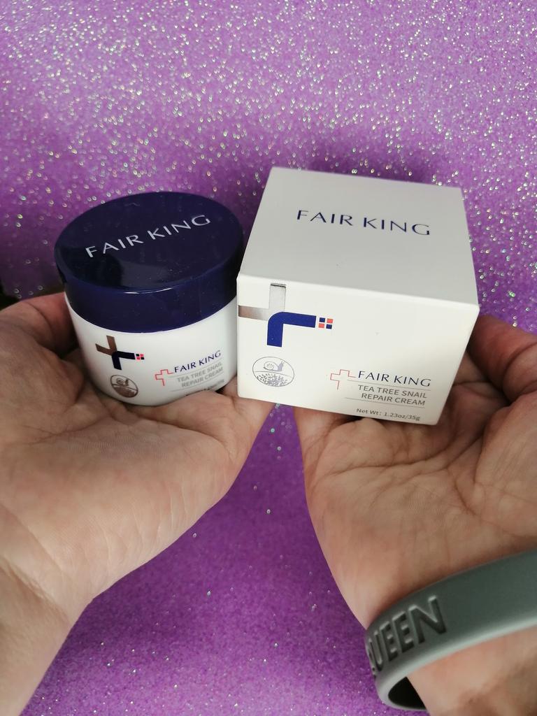 Tea tree & Snail Essence - Face Cream Brand: Fair King I was so curious about this facial cream, because it has a very interesting combination snail essence and tea tree. Tea tree is known for anti-inflammatory, anti-bacterial, anti-acne properties, it combats with oily skin. Tea tree oil can help soothe dry skin by reducing itching and irritation. Snail essence is rich in hyaluronic acid, and has been shown to exhibit antioxidant activities, stimulate collagen production, and enhance wound healing. 🔸anti-acne 🔸anti-aging 🔸moisturizing 🔸hyaluronic acid Cream has soft delicate texture. It smooths skin so well. It doesn't give greasy feeling. It is suitable for all skin types. Expiration date is 1 year later. I couldn't find the production date. It has 35g at total. If you have oily and you are around your 30s or more (mature skin), I recommend this cream. You're gonna like it.