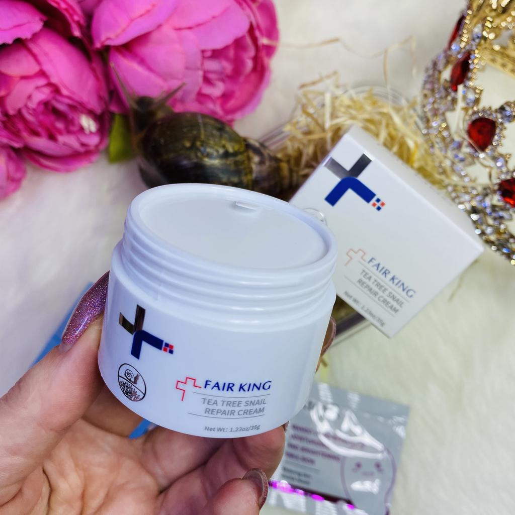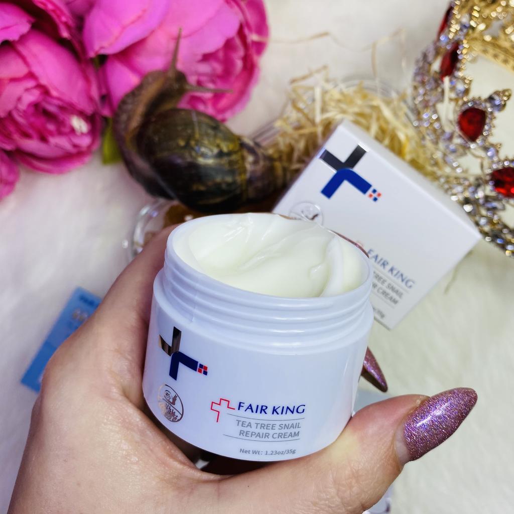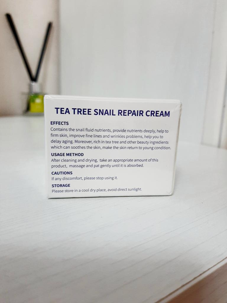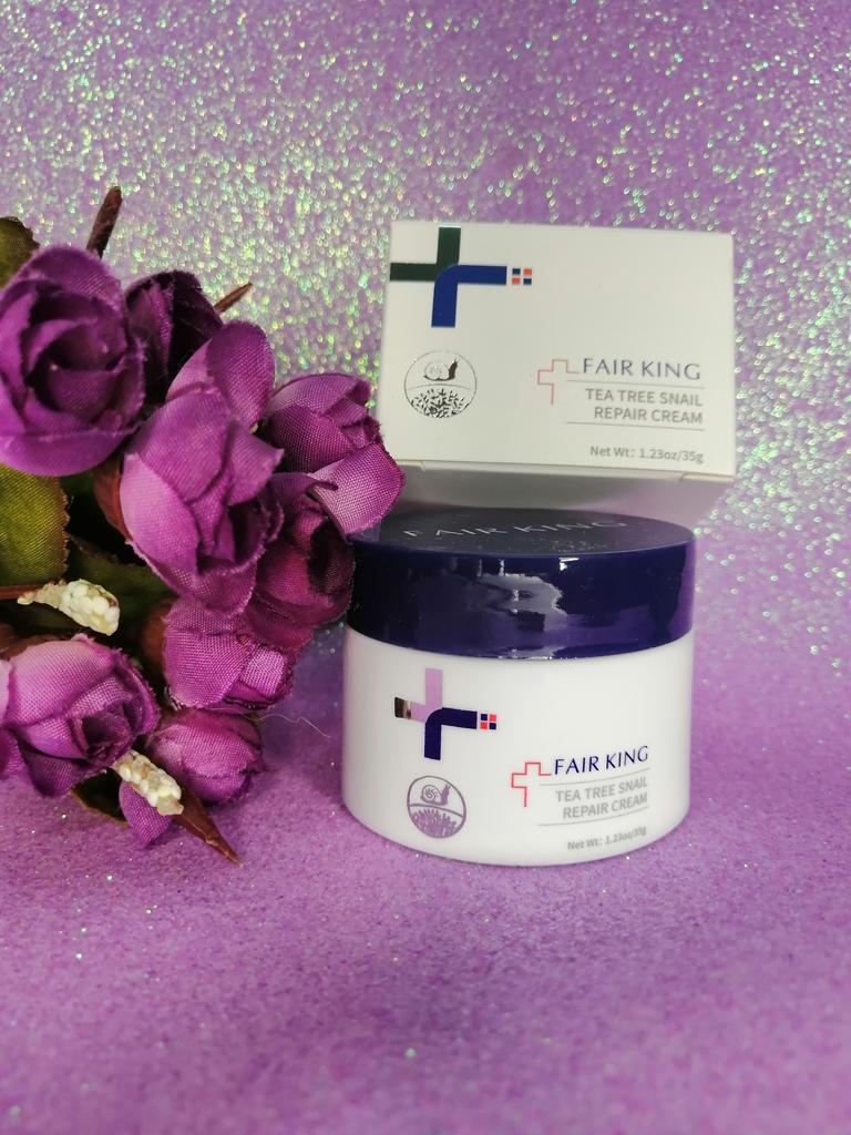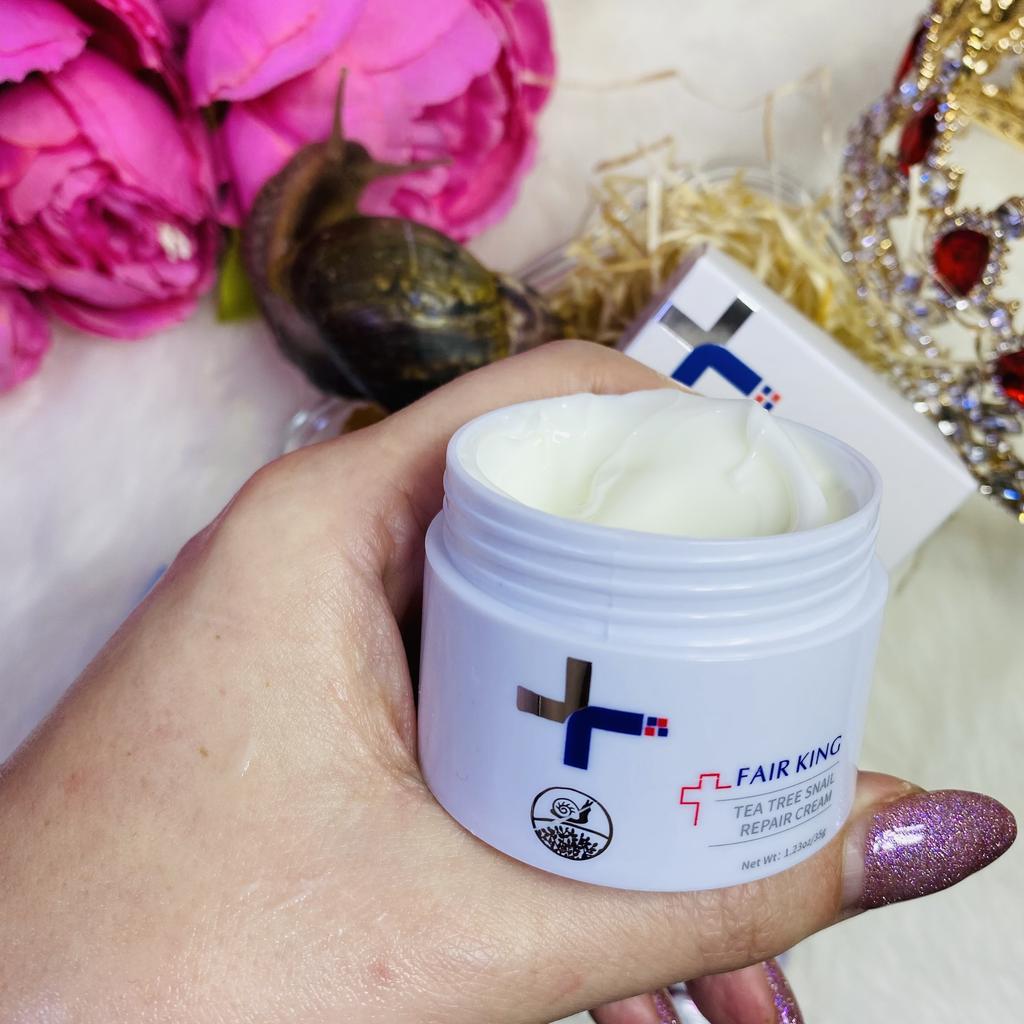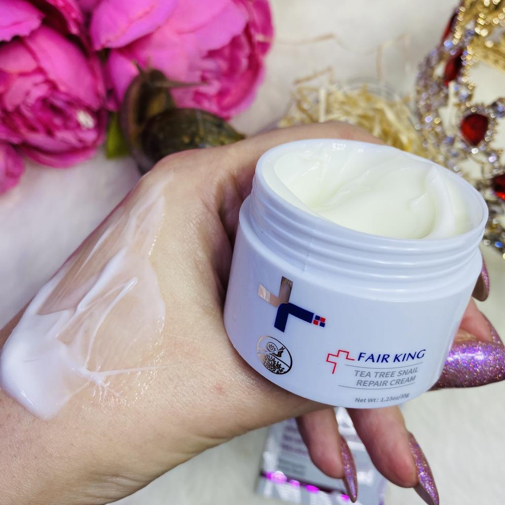 Tea tree & Snail Essence - Face Cream Brand: Fair King I was so curious about this facial cream, because it has a very interesting combination snail essence and tea tree. Tea tree is known for anti-inflammatory, anti-bacterial, anti-acne properties, it combats with oily skin. Tea tree oil can help soothe dry skin by reducing itching and irritation. Snail essence is rich in hyaluronic acid, and has been shown to exhibit antioxidant activities, stimulate collagen production, and enhance wound healing. 🔸anti-acne 🔸anti-aging 🔸moisturizing 🔸hyaluronic acid Cream has soft delicate texture. It smooths skin so well. It doesn't give greasy feeling. It is suitable for all skin types. Expiration date is 1 year later. I couldn't find the production date. It has 35g at total. If you have oily and you are around your 30s or more (mature skin), I recommend this cream. You're gonna like it.