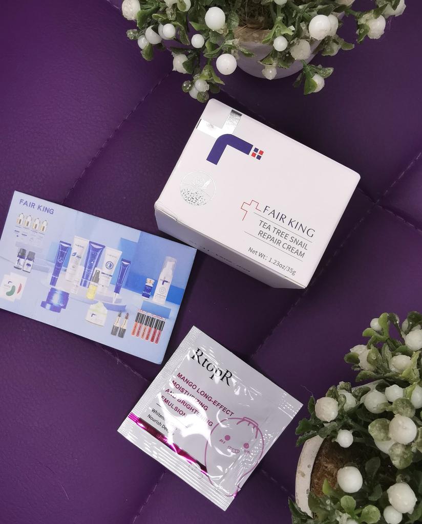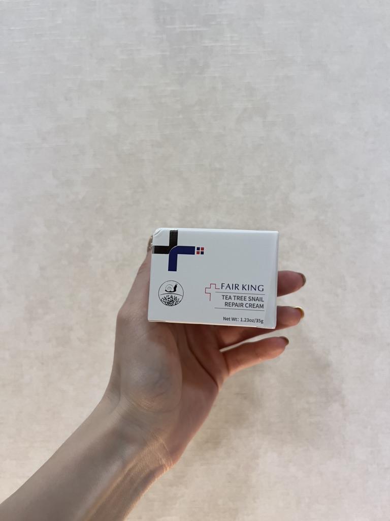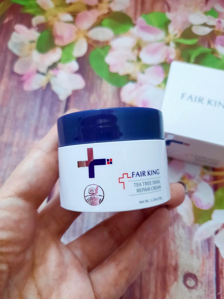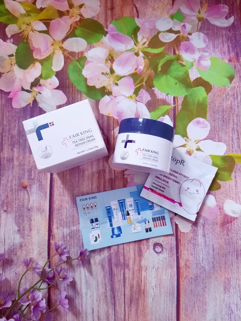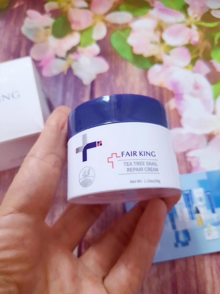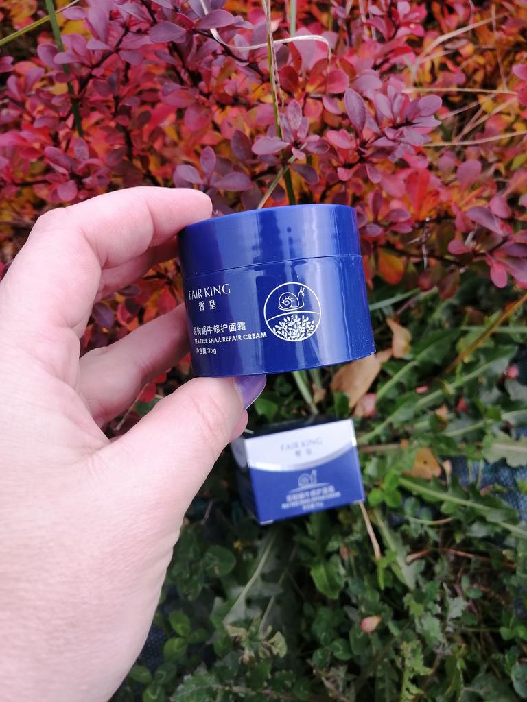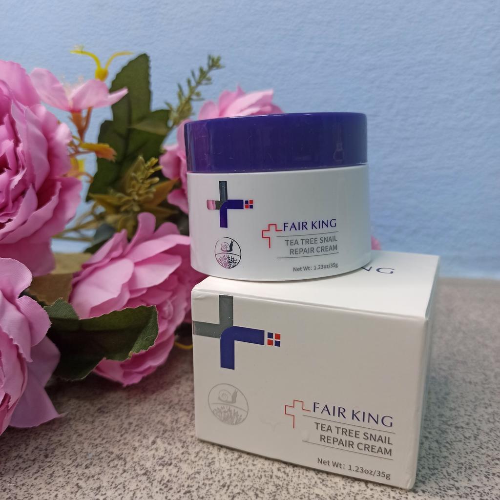 Tea tree & Snail Essence - Face Cream Brand: Fair King I was so curious about this facial cream, because it has a very interesting combination snail essence and tea tree. Tea tree is known for anti-inflammatory, anti-bacterial, anti-acne properties, it combats with oily skin. Tea tree oil can help soothe dry skin by reducing itching and irritation. Snail essence is rich in hyaluronic acid, and has been shown to exhibit antioxidant activities, stimulate collagen production, and enhance wound healing. 🔸anti-acne 🔸anti-aging 🔸moisturizing 🔸hyaluronic acid Cream has soft delicate texture. It smooths skin so well. It doesn't give greasy feeling. It is suitable for all skin types. Expiration date is 1 year later. I couldn't find the production date. It has 35g at total. If you have oily and you are around your 30s or more (mature skin), I recommend this cream. You're gonna like it.