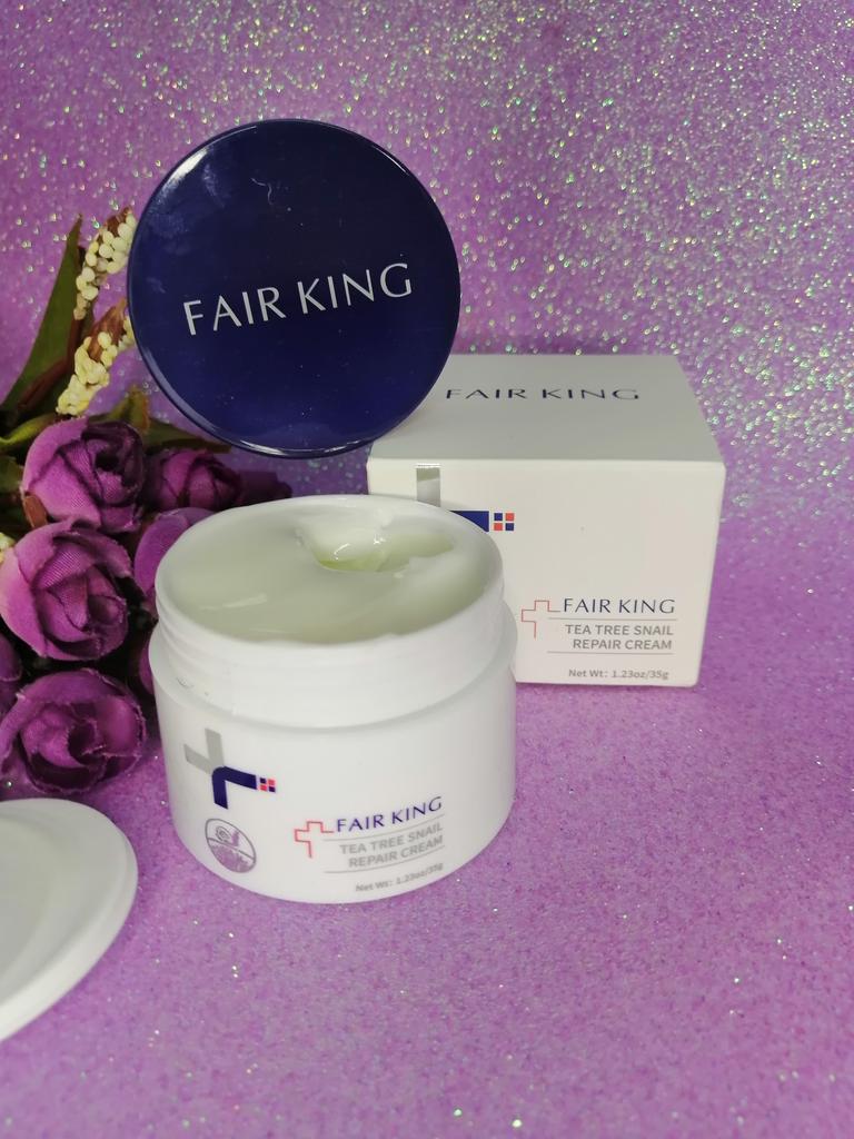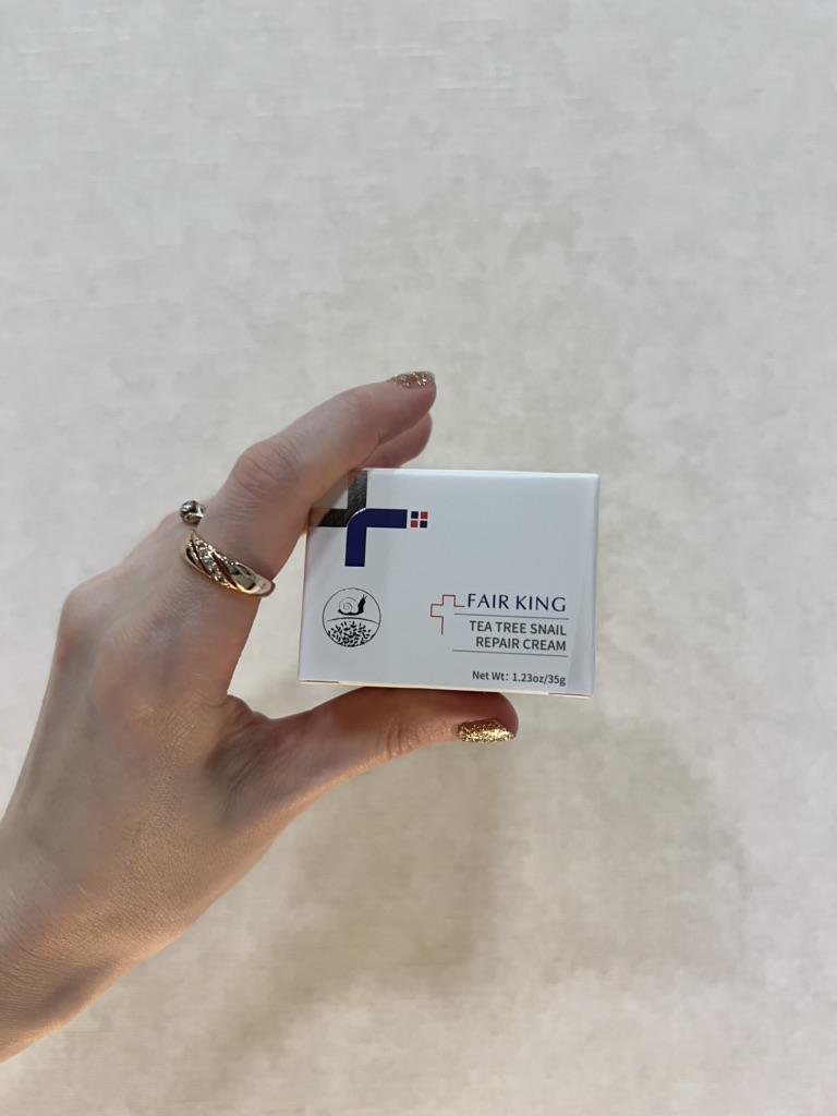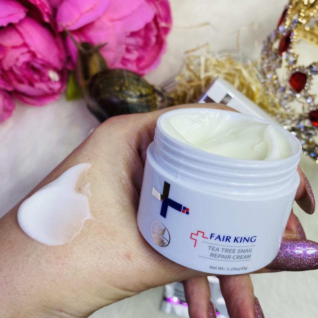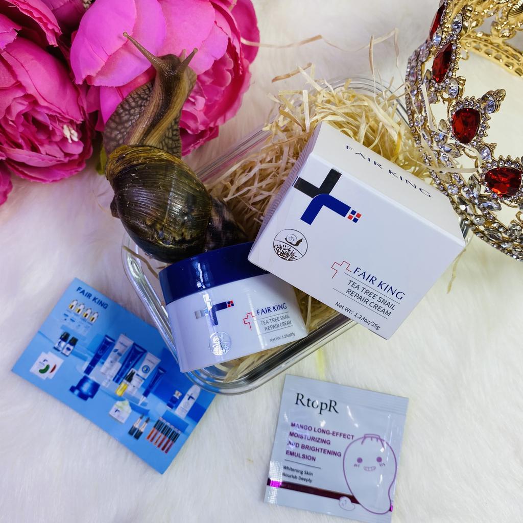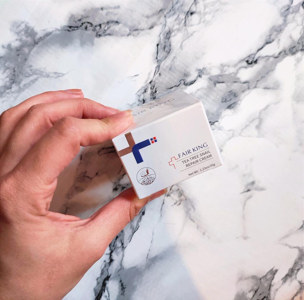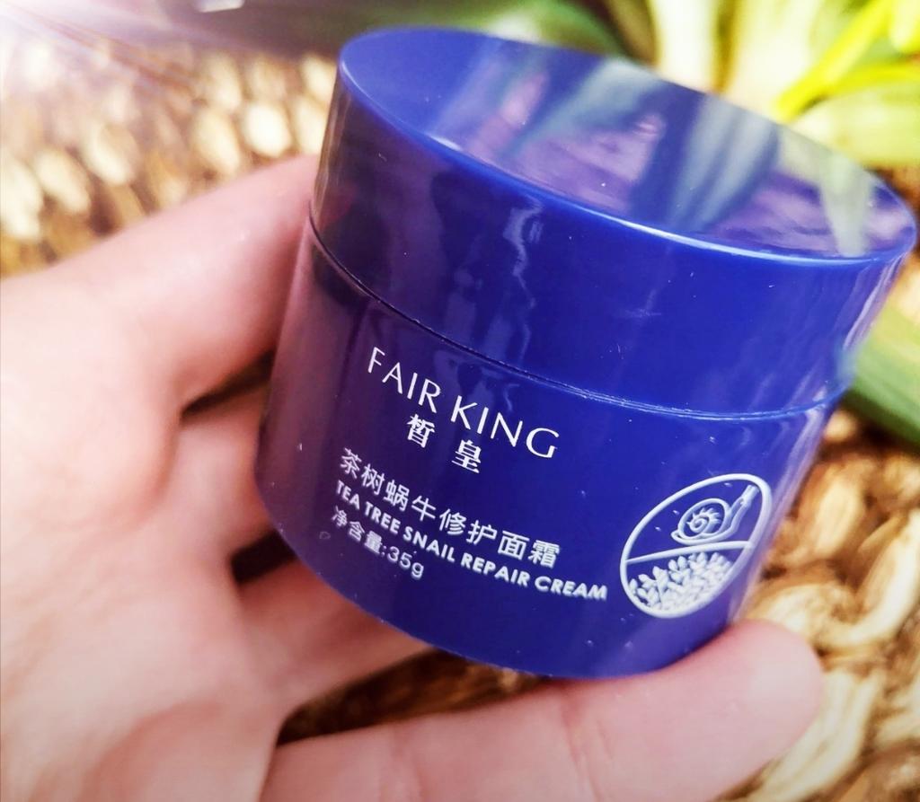 Tea tree & Snail Essence - Face Cream Brand: Fair King I was so curious about this facial cream, because it has a very interesting combination snail essence and tea tree. Tea tree is known for anti-inflammatory, anti-bacterial, anti-acne properties, it combats with oily skin. Tea tree oil can help soothe dry skin by reducing itching and irritation. Snail essence is rich in hyaluronic acid, and has been shown to exhibit antioxidant activities, stimulate collagen production, and enhance wound healing. 🔸anti-acne 🔸anti-aging 🔸moisturizing 🔸hyaluronic acid Cream has soft delicate texture. It smooths skin so well. It doesn't give greasy feeling. It is suitable for all skin types. Expiration date is 1 year later. I couldn't find the production date. It has 35g at total. If you have oily and you are around your 30s or more (mature skin), I recommend this cream. You're gonna like it.
