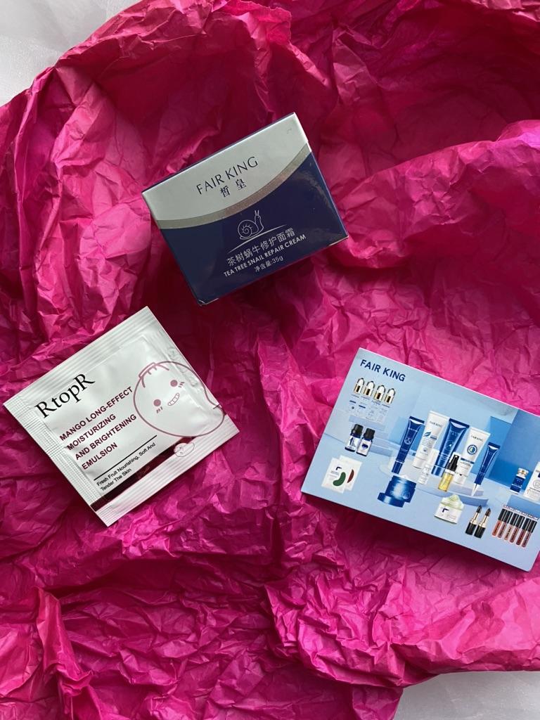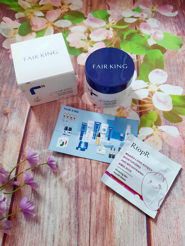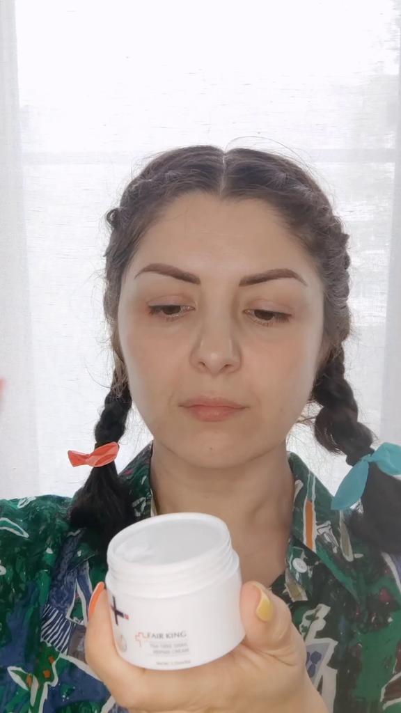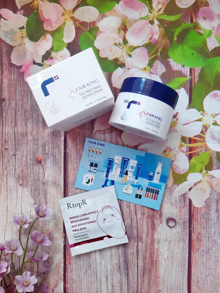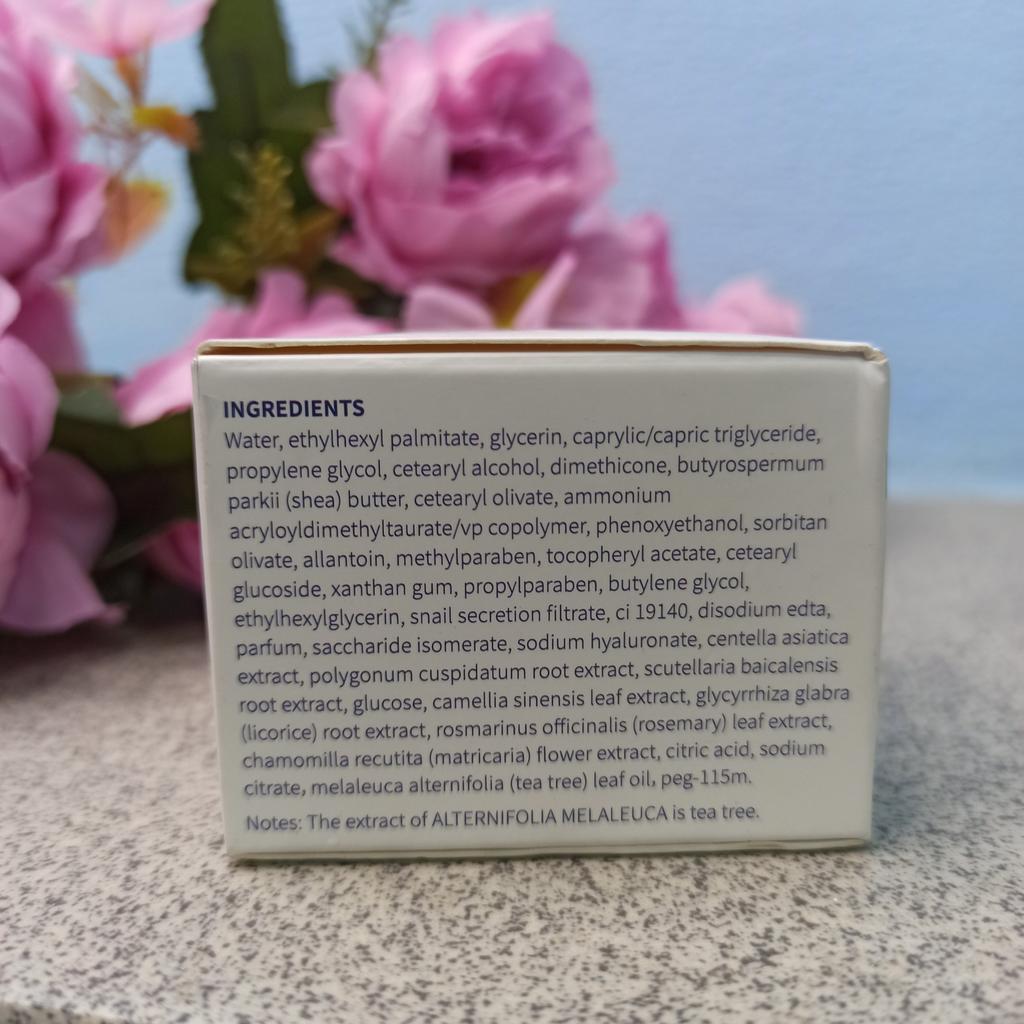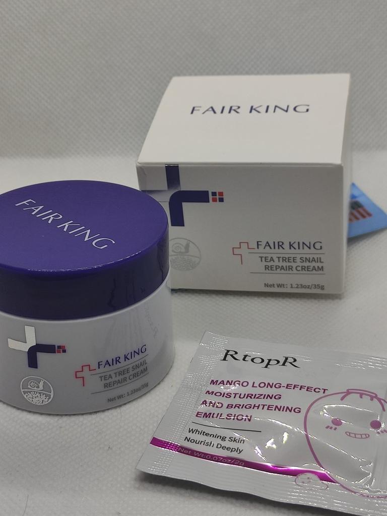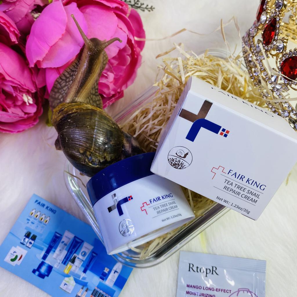 Tea tree & Snail Essence - Face Cream Brand: Fair King I was so curious about this facial cream, because it has a very interesting combination snail essence and tea tree. Tea tree is known for anti-inflammatory, anti-bacterial, anti-acne properties, it combats with oily skin. Tea tree oil can help soothe dry skin by reducing itching and irritation. Snail essence is rich in hyaluronic acid, and has been shown to exhibit antioxidant activities, stimulate collagen production, and enhance wound healing. 🔸anti-acne 🔸anti-aging 🔸moisturizing 🔸hyaluronic acid Cream has soft delicate texture. It smooths skin so well. It doesn't give greasy feeling. It is suitable for all skin types. Expiration date is 1 year later. I couldn't find the production date. It has 35g at total. If you have oily and you are around your 30s or more (mature skin), I recommend this cream. You're gonna like it.
