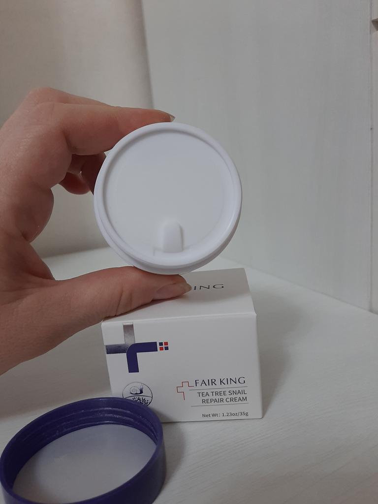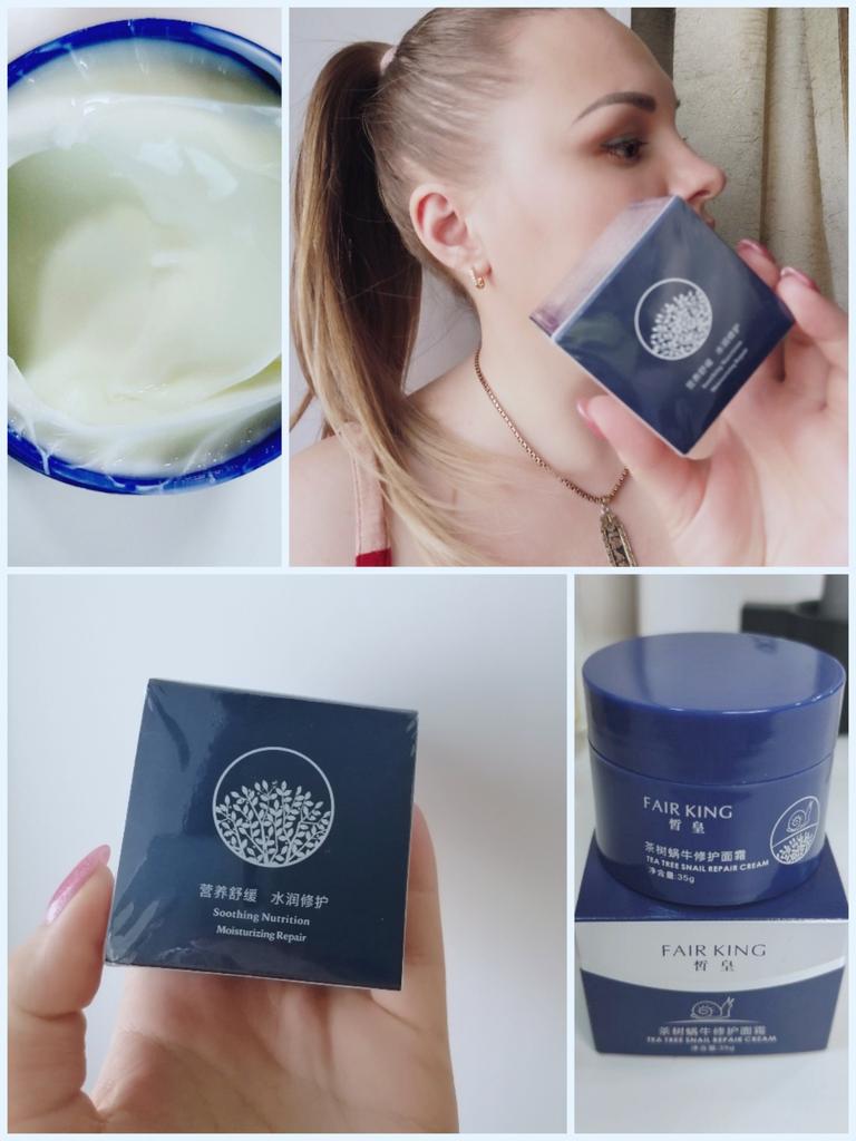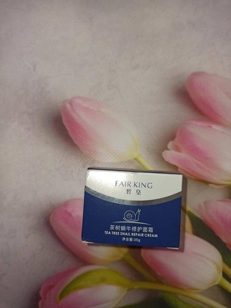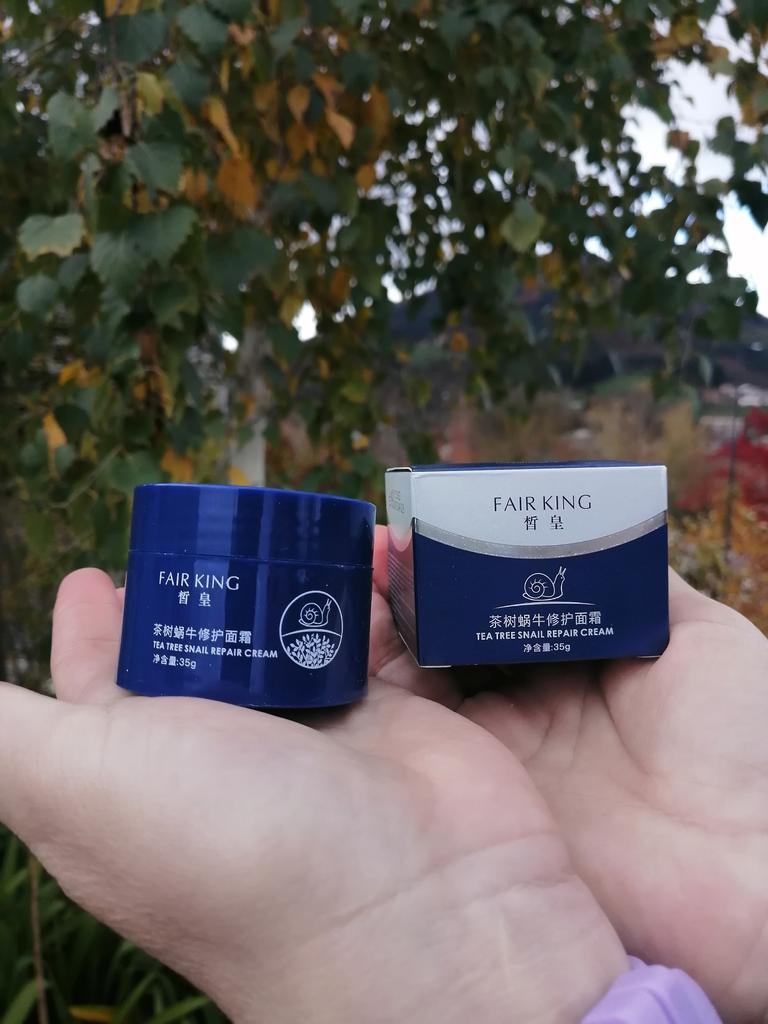 🐌 Tea tree & Snail Essence - Face Cream Brand: Fair King 🌟🌟🌟🌟🌟 This is my second time ordering this cream. I like it's combination of snail essence and tea tree. These ingredients are perfect for my acne prone skin. Only thing changed is the packaging. Blue package became white. I think white looks better 👍 This facial cream is for: 🔸anti-acne 🔸anti-aging 🔸moisturizing 🔸hyaluronic acid ℹ️ Snail essence is rich in hyaluronic acid, and has been shown to exhibit antioxidant activities, stimulate collagen production, and enhance wound healing. ℹ️ Tea tree is known for anti-inflammatory, anti-bacterial, anti-acne properties, which improves oily skin. Tea tree oil can help soothe dry skin by reducing itching and irritation. Cream has soft delicate texture. It smooths skin so well. It doesn't give greasy feeling. It is suitable for all skin types. The net amount is 35g I love this brand and it's products. I highly recommend it 👍 Please hit the like button, if you find my reviews interesting and useful. Also follow me on Joom and instagram (if you haven't yet), I share personal things on Instagram. If you have any questions about the products, feel free to leave a comment. 😘