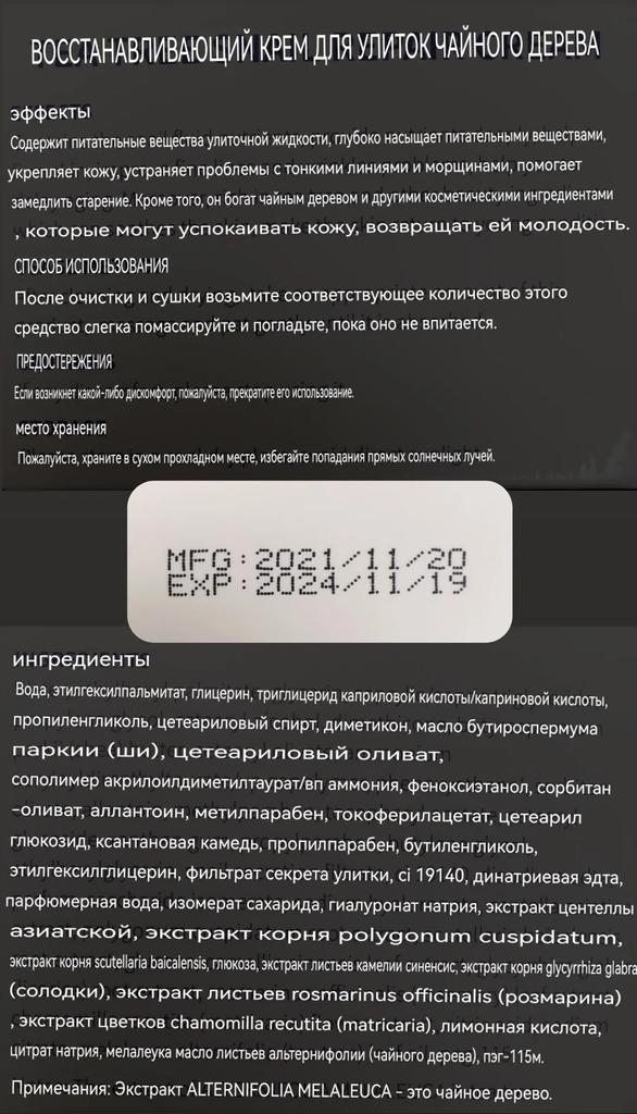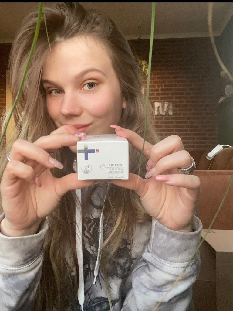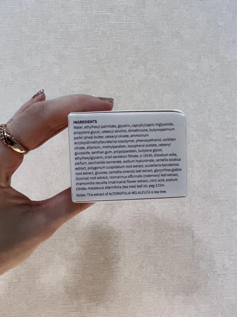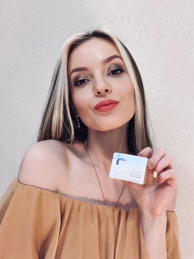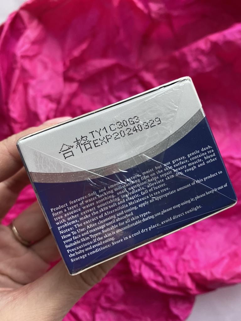 🐌 Tea tree & Snail Essence - Face Cream Brand: Fair King 🌟🌟🌟🌟🌟 This is my second time ordering this cream. I like it's combination of snail essence and tea tree. These ingredients are perfect for my acne prone skin. Only thing changed is the packaging. Blue package became white. I think white looks better 👍 This facial cream is for: 🔸anti-acne 🔸anti-aging 🔸moisturizing 🔸hyaluronic acid ℹ️ Snail essence is rich in hyaluronic acid, and has been shown to exhibit antioxidant activities, stimulate collagen production, and enhance wound healing. ℹ️ Tea tree is known for anti-inflammatory, anti-bacterial, anti-acne properties, which improves oily skin. Tea tree oil can help soothe dry skin by reducing itching and irritation. Cream has soft delicate texture. It smooths skin so well. It doesn't give greasy feeling. It is suitable for all skin types. The net amount is 35g I love this brand and it's products. I highly recommend it 👍 Please hit the like button, if you find my reviews interesting and useful. Also follow me on Joom and instagram (if you haven't yet), I share personal things on Instagram. If you have any questions about the products, feel free to leave a comment. 😘