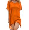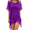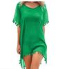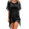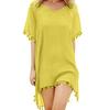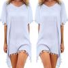 Summer Bikini Cover Up Chiffon Pompom Detail Hollow Crochet Swimsuit Cover-Ups Bathing Suit F Size