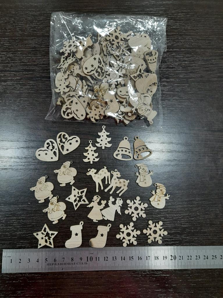 100 Adet/takım Noel Süslemeleri Çevre Koruma Doğal Retro Renkli Karikatür Ahşap Cips
