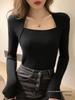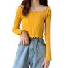 Women Full Sleeve Square Neck Sweater Knitted Basic Elasticity Pullovers Autumn Solid Jumpers