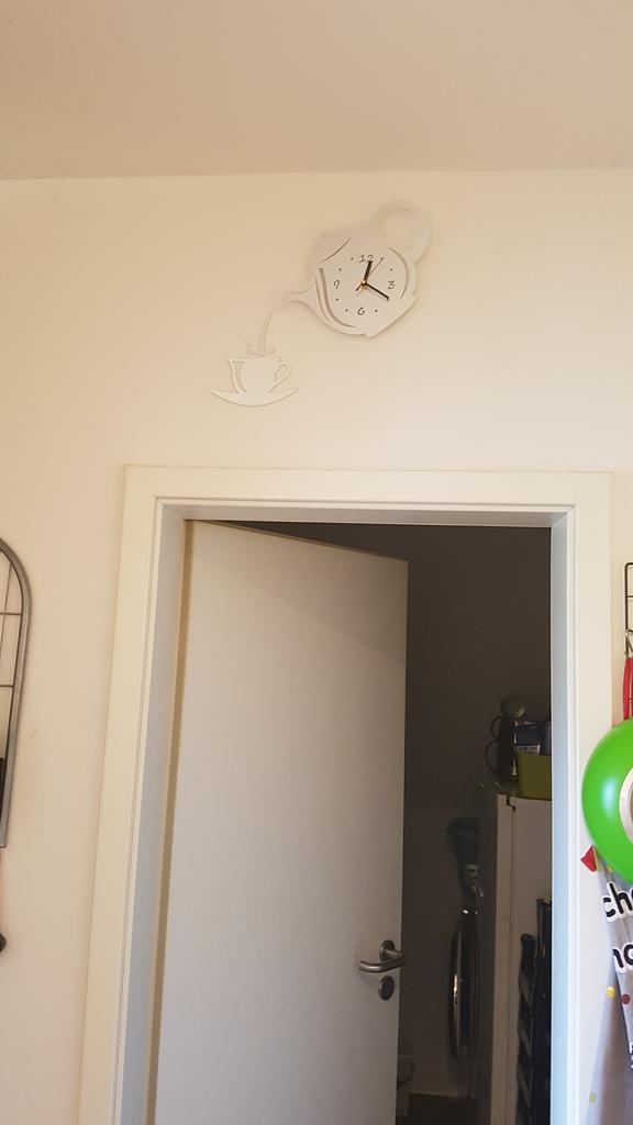 3D Akrilik Ayna Kahve Çaydanlık Duvar Saati Dekoratif Saat Etiket