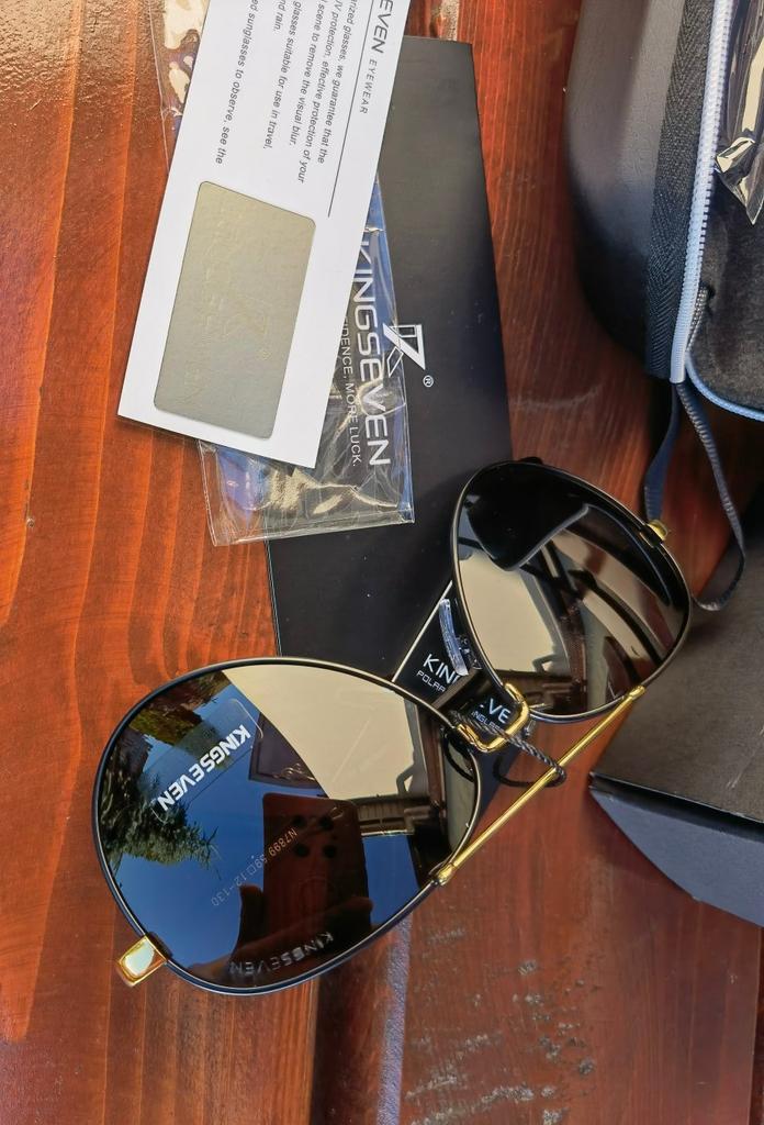 Sunglasses from KINGSEVEN 🌞😎 Aviator glasses are indicated as men's, but I think girls will also look great in them 😉 The glasses are mega bombastic 😁. Glass of glasses with photochromic and anti-glare properties, with polarization and UV filter. The base is metal. Glasses are light, comfortable, sit comfortably 😎 A lot of "dowry" is included in the package with the glasses: a case, a storage bag, a napkin for care, a polarization check test, an instruction manual 😁. I liked the glasses, I definitely recommend both the seller and the product. I received the goods in 28 days in a combined parcel ✈️ The track was tracked completely. The arrival at the point of issue was announced by sms 📲. The packaging is very careful! You can safely order as a gift 🎁 If the feedback was useful, put it as a favorite 💖 Happy shopping and fast deliveries to everyone 🛍️☺️🚀🍒 PS: A fresh promo code is already waiting for you in my Telegram channel: Olena.joom.thebest 🎁, don't hesitate to come in 😉