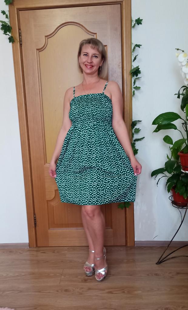 A summer, very feminine dress. 👗 I am satisfied with it and I like it very much. The seller has tons of designs to offer, so maybe I'll take advantage of more 🙂 Pleasant material, carefully sewn, wide elastic on the chest and back holds well. The straps are adjustable. Although the size is universal, I would recommend it for S or M. If I had an L I would feel less comfortable. In general, however, I recommend it very heartily and invite you to my profile for other opinions and reviews as well as photos of products. Enjoyable shopping🥰