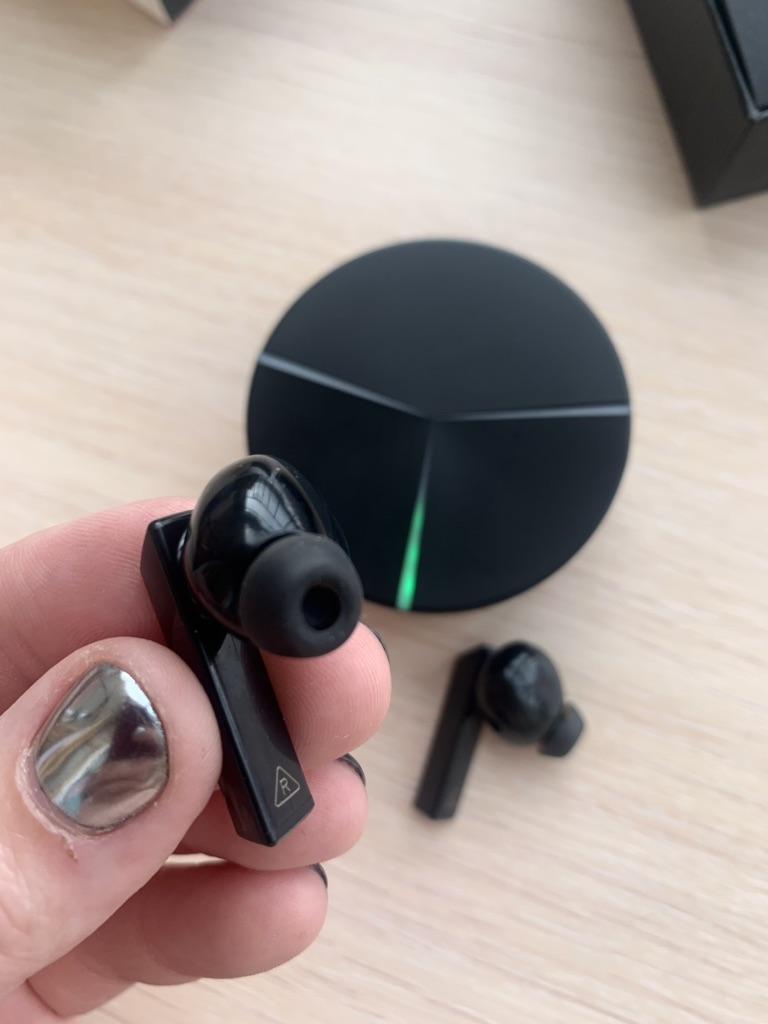 Lenovo GM1 oyun için yaratıldı. Kulaklıklar kulaklara iyi oturur. Kulaklıklar, mikrofonun sesinizi almasını kolaylaştırmak için tasarlanmıştır. Şarj kutusunda birkaç bölüm var. Her parlayan çubuk %25 şarjı gösterir.