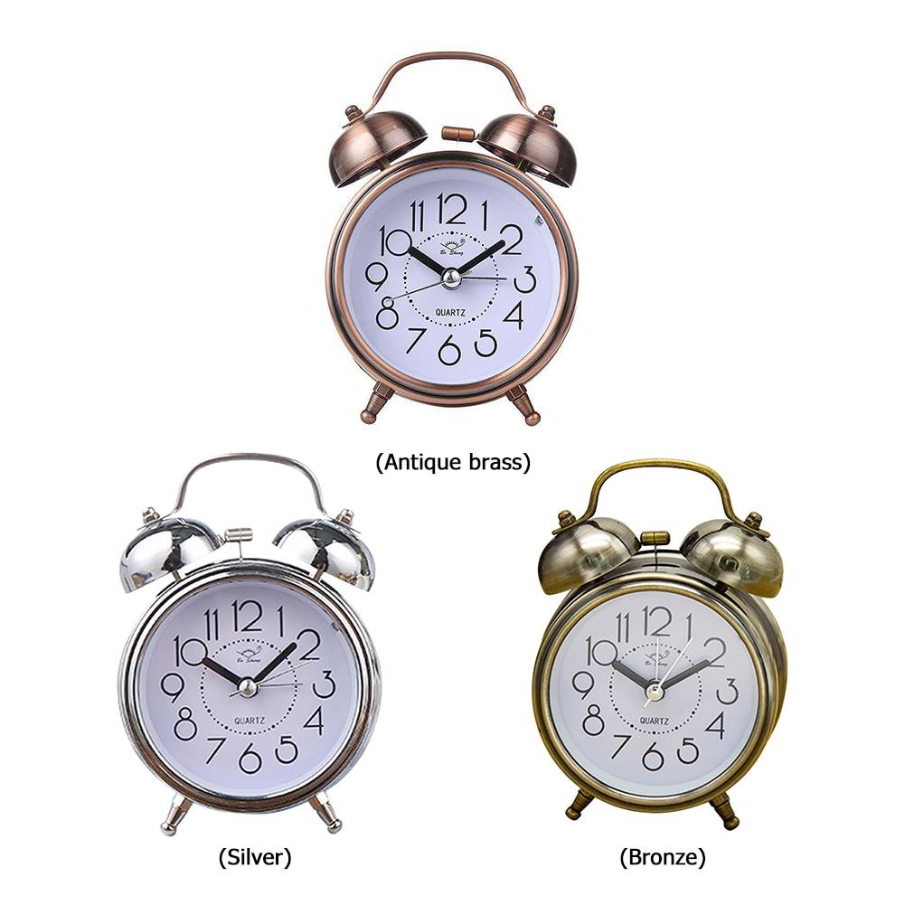Alarm Clock Vintage Retro Silent Pointer Clocks Playing Bell Loud Alarm Clock with Light