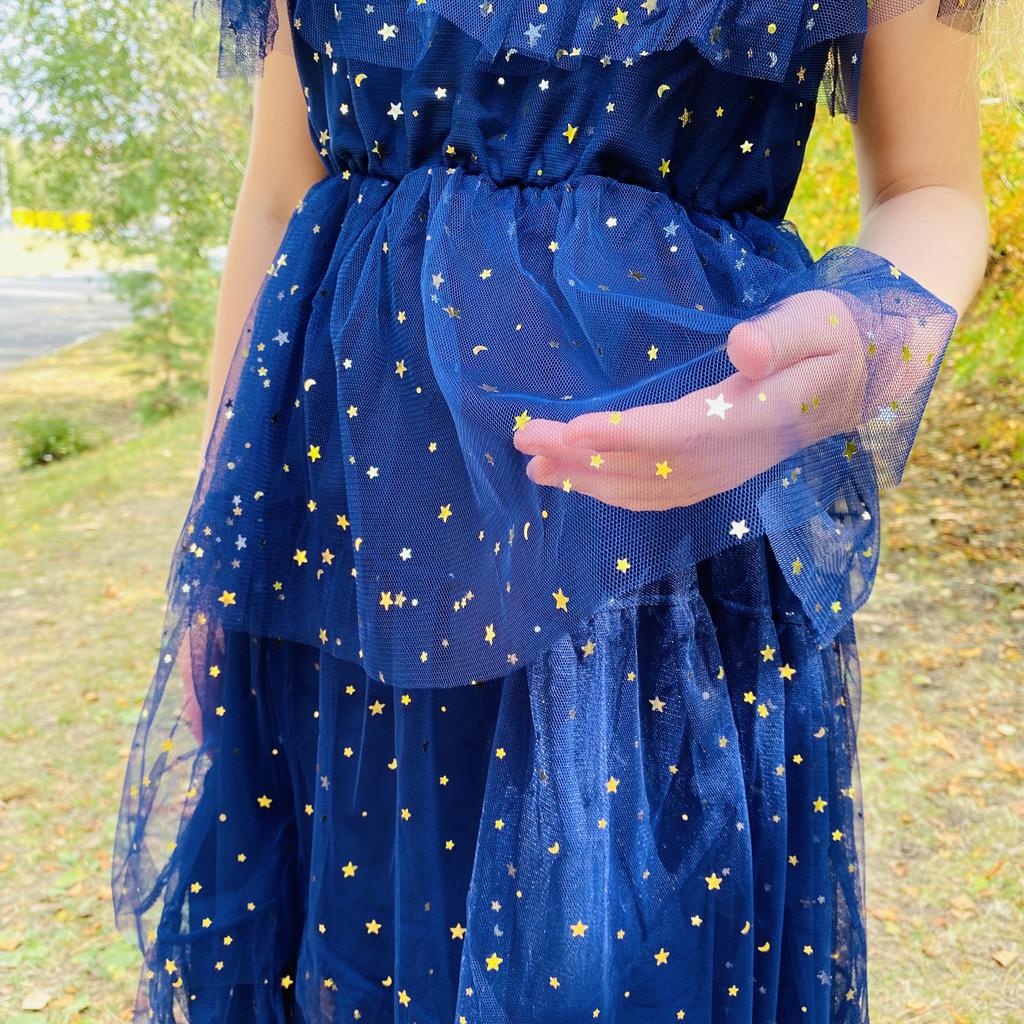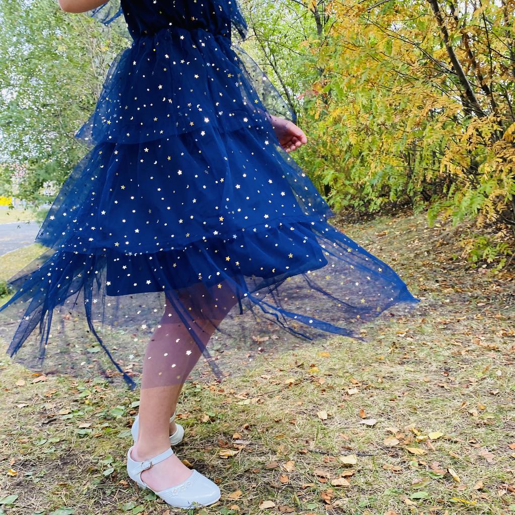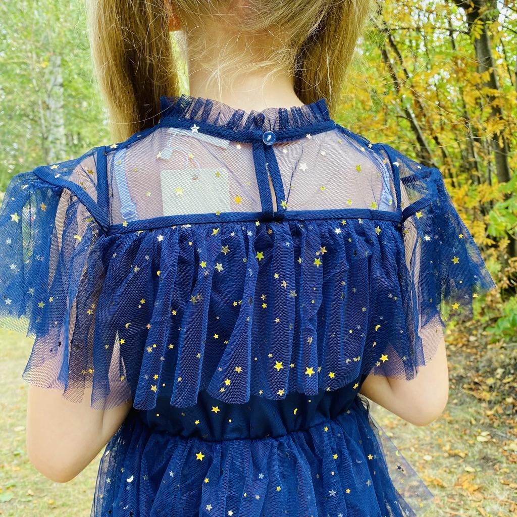 YUBAOBEI Kızlar Yaz Dantel Elbise Kore Sevimli çocuk Yıldız Baskı Kısa kollu Prenses Elbiseler Doğum Günü Partisi Elbisesi çocuk Hediye