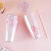 Kiraz Çiçeği Seyahat Cam Kahve Kupa Açık Isıya Dayanıklı Ölçekli Çay Fincanı Kaymaz Kapaklı Şeffaf Süt Kahvaltı Fincan