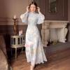 V yaka zarif tatlı elbise kadınlar uzun kollu şifon çiçekli elbise parti plaj elbisesi kadınlar için kore tarzı 2023 yaz şık