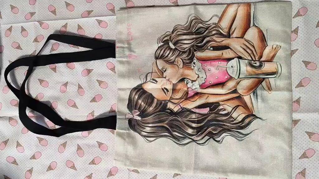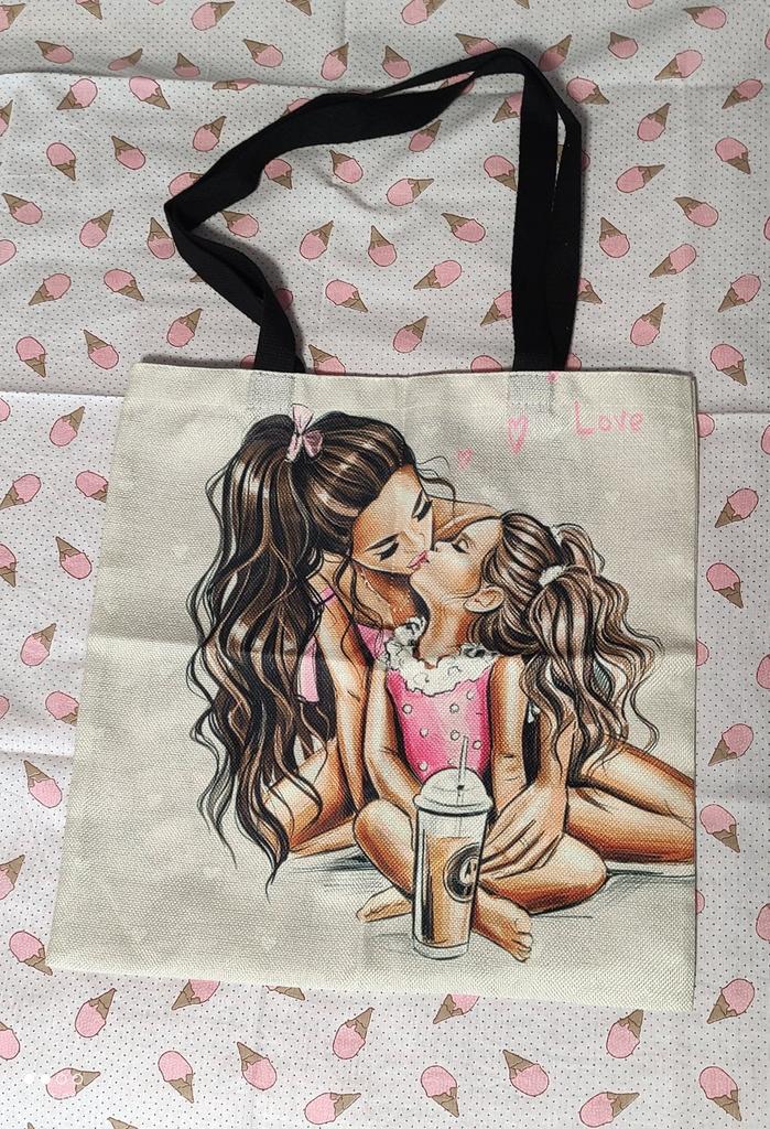 Sevimli Karikatür Süper Anne Baskı Keten Tote Çanta Yeniden Kullanılabilir Omuz Çantaları Anne ve Bebek Katlanır Kadın Rahat Çanta Bayan Kumaş Tote