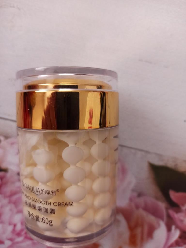 2 IN 1 - Face Cream + Gel Brand: BIOAQUA 🌟🌟🌟🌟🌟 This is my second order of this cream/gel. It moisturizes my oily combination skin in a perfect way that it leaves my skin refresh and it doesn't cause breakouts. It doesn't leave greasy feeling. This cream as a very interesting look. The white dots are creams and their surrounding is transparent gel. I really like this look. It has hyaluronic acid, which is known for it's wonderful hydrate skills. This facial cream is for: 🌸Moisturizing 🌸Hydrating 🌸Smoothing 🌸Fighting with wrinkles 🌸Repairing problematic skin 🌸Tighten skin It has a pretty amazing amount, which is 60 gr. Normally facial creams are around 30-40 g. So this one has a big amount. The brand is BIOAQUA, I'm using this brand's products for years and I like them. I can safely recommend this cream especially for the ones who have oily and combination skins. Please hit the like button, if you find my reviews interesting and useful. Also follow me on Joom and instagram (if you haven't yet), I share personal things on Instagram. If you have any questions about the products, feel free to leave a comment. 😘