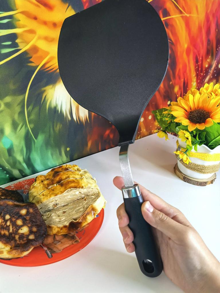 *Spatula in XXL* 💗𝗟𝗶𝗲𝗳𝗲𝗿𝘇𝗲𝗶𝘁: The delivery time to Germany printed almost exactly on the day 4 weeks. 💗𝗟𝗶𝗲𝗳𝗲𝗿𝘂𝗺𝗳𝗮𝗻𝗴: An XXL spatula is included in the scope of delivery. 💗𝗤𝘂𝗮𝗹𝗶𝘁ä𝘁: The spatula makes a stable impression, it is larger than a conventional spatula. Therefore super practical e.g. when frying eggs or baking pizza. Dimensions: 16×16 cm (approx.) It seems to be made of a heat-resistant material, at least nothing melted for me. The handle does not get hot when in use. In order to better load the pizza or fried eggs onto the spatula, the tip is cut off and not round. Everything is super easy to clean by hand or in the dishwasher. 💗𝗙𝗮𝘇𝗶𝘁: Very useful invention. I can recommend them. 👍