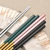 6 Çift Lüks 18/10 Paslanmaz Çelik Kare Çubuklar Titanyum Altın Gül Suşi Renkli Çin Japon Tarzı Çubuklarını