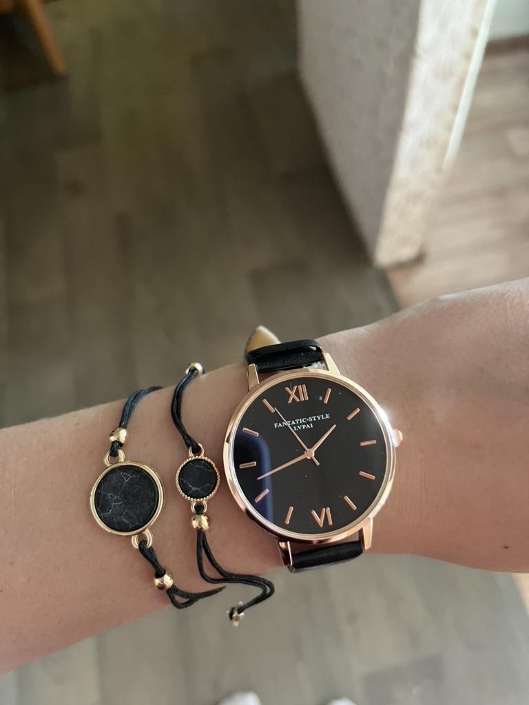 Basit Saat Seti Kuvars Saat Trend Pu Kayış Bayan Bileklik Seti