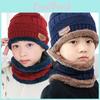 2 In 1 Kış Sıcak Polar Astar Örme Bere Şapka Tüp Eşarp Seti Erkek Kız Skullies Kap