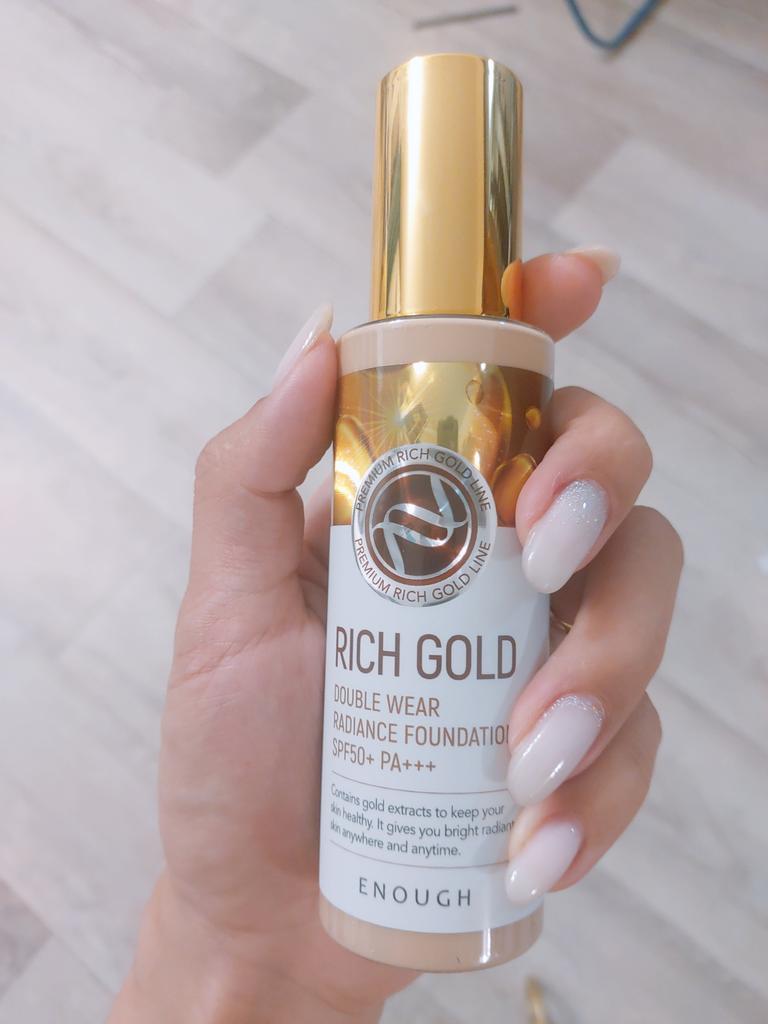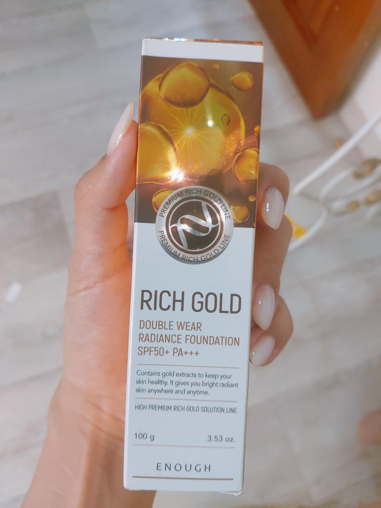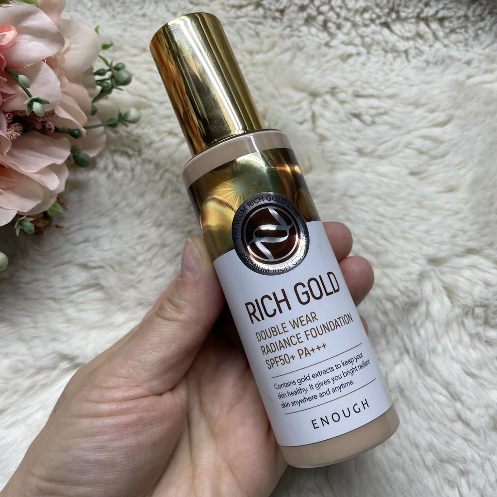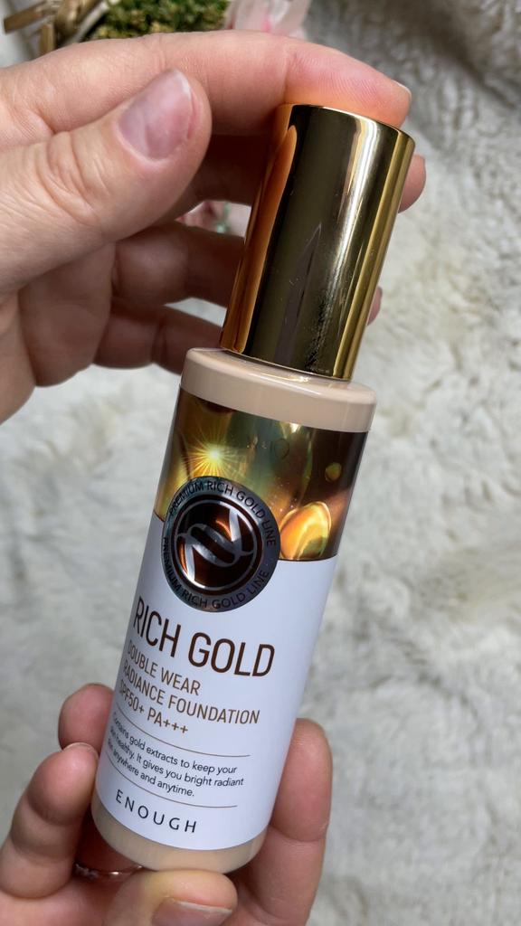 Rich Gold Double Wear Radiance Foundation SPF50 + PA +++ cilde kusursuz bir görünüm kazandırmanın yanı sıra gençleştirici bir etki de sağlayan eşsiz bir makyaj ürünüdür.. Altın bazlı formül cildi güçlendirir ve yaşlanma sürecini yavaşlatır, cilt kusurlarını, pigmentasyonu ve yaşa bağlı değişikliklerin belirtilerini etkili bir şekilde gizler, tonunu tazeler ve eşitler, parlak ve ipeksi yapar.