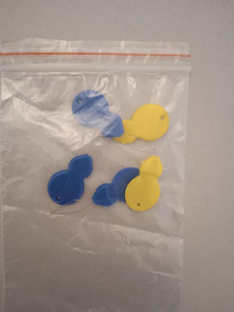 5 plastic needle threaders. It arrived in Spain in less than a month. I recommend the seller and the final product