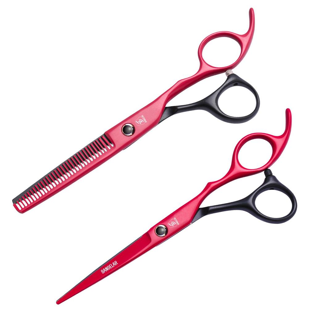 SANGELAR 6 inç Siyah Kırmızı Saç Makası Profesyonel Kuaför Makası Kuaför Kesme Makası İnceltme Makası