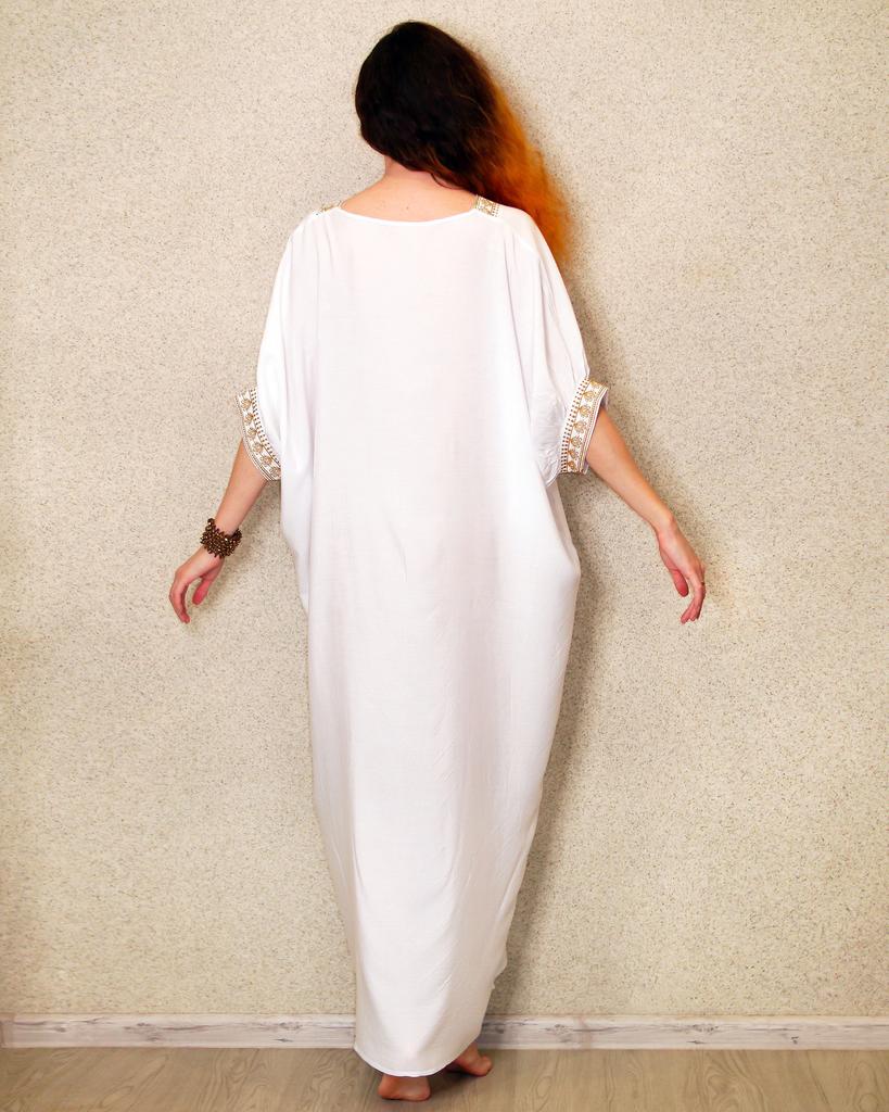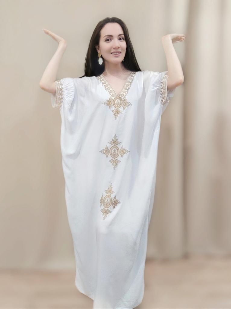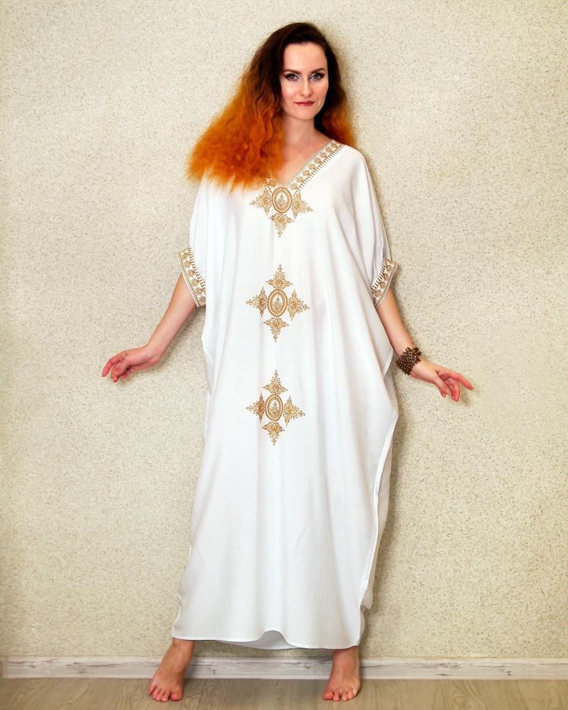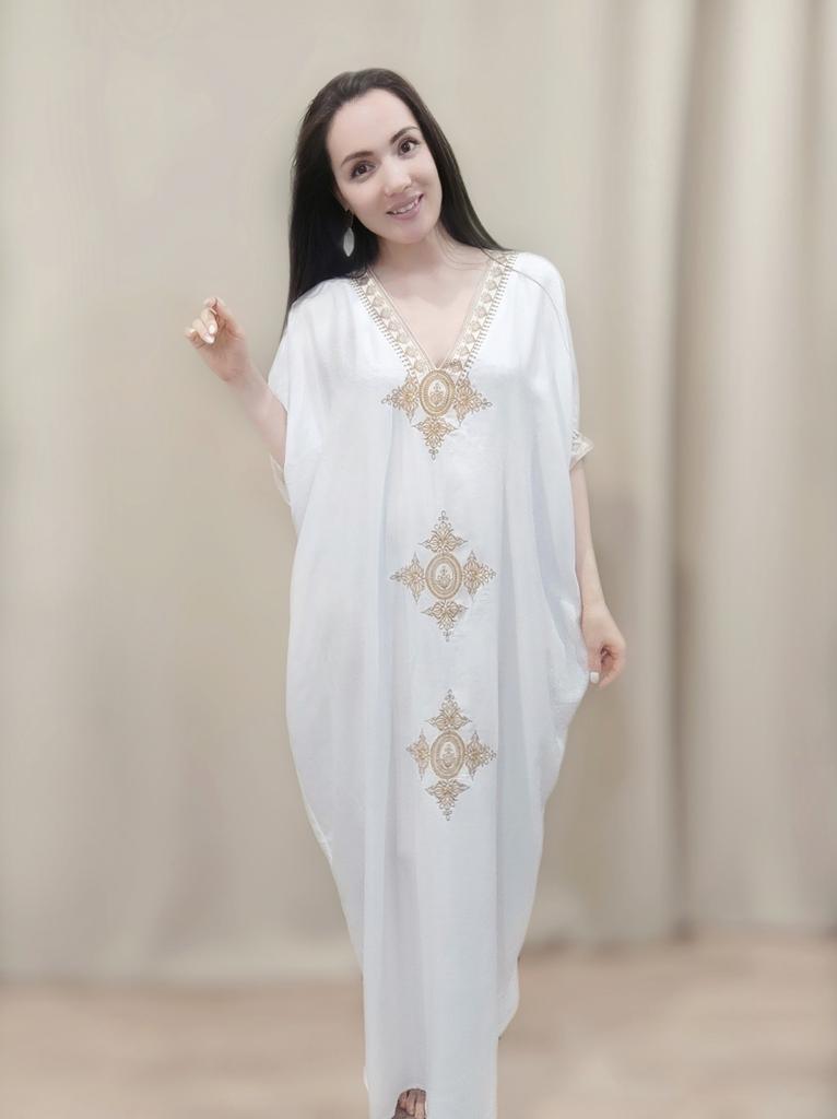 2022 Zarif Altın İşlemeli Kaftan Retro V Yaka Beyaz Elbise Artı Boyutu Kadın Giyim Yaz Plaj Kıyafeti mayo Cover Up