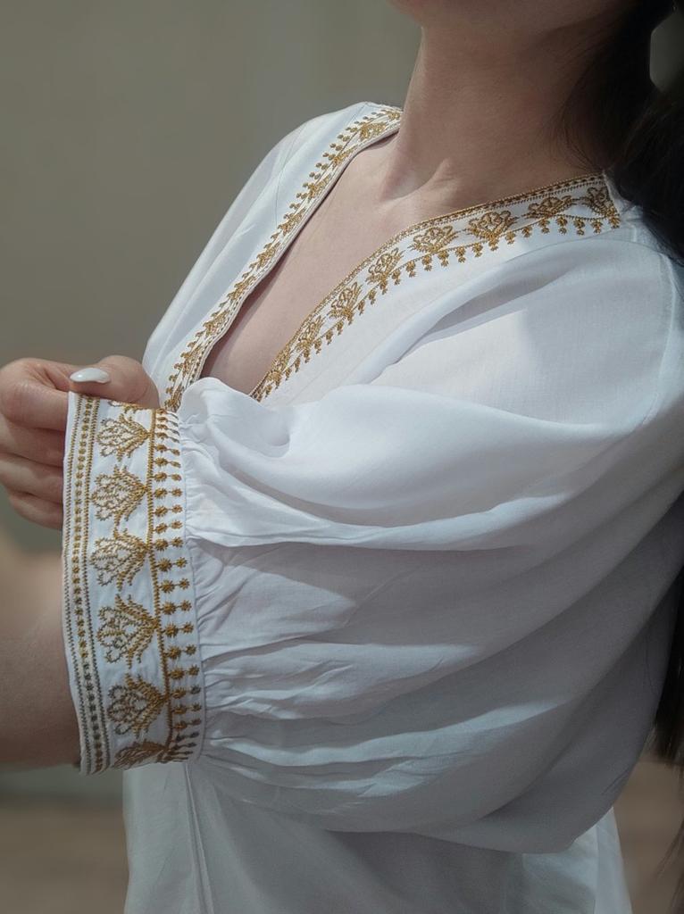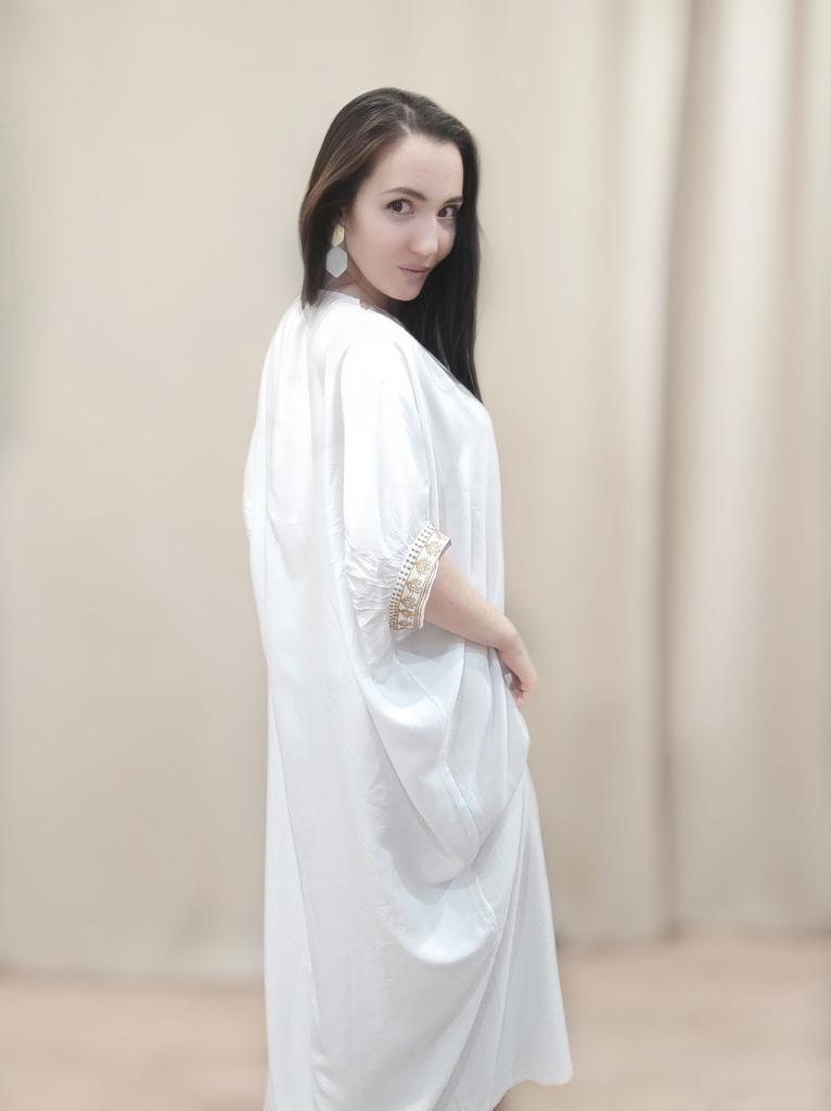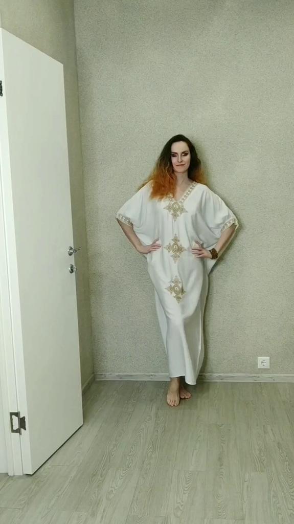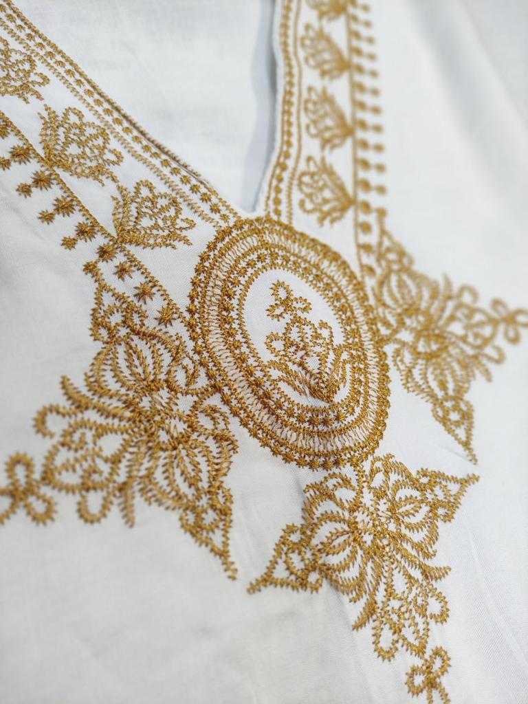 2022 Zarif Altın İşlemeli Kaftan Retro V Yaka Beyaz Elbise Artı Boyutu Kadın Giyim Yaz Plaj Kıyafeti mayo Cover Up