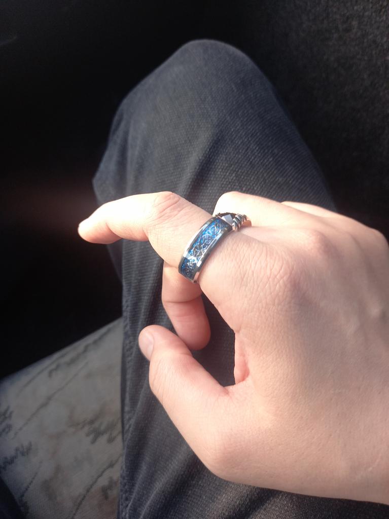 Apparently size 8 is still a bit too big for my fingers. Might have to give this one to my boyfriend, but it's a great ring and super pretty!