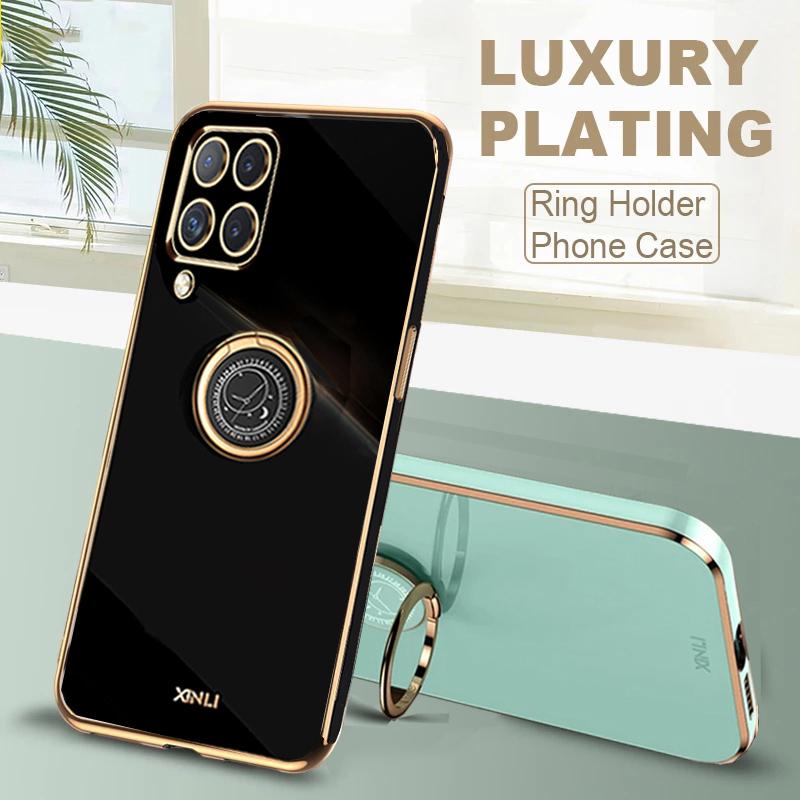 Gold Frame Plating Ring Stand Holder Case For Samsung Galaxy A22 A32 A72 A82 M32 4G 5G S10 S20 FE S21 Plus Ultra Lens Protection Soft TPU Back Cover