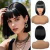 XINRAN Kadın Moda Koyu Mavi Kısa Düz Bob Peruk Patlamalı Omuz Uzunluğunda Sentetik Elyaf Peruk Lolita Parti Cosplay Günlük Kullanım için