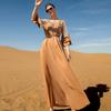 Khaki Ruffle Panel Mesh Slim Fit Elbise Dubai Müslüman Elbisesi