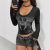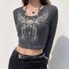 Crop Top Women Vintage Grunge Graphic Print Slim Fit Fairy Tees Tops Retro Aesthetic Long Sleeve Female T Shirt Streetwear