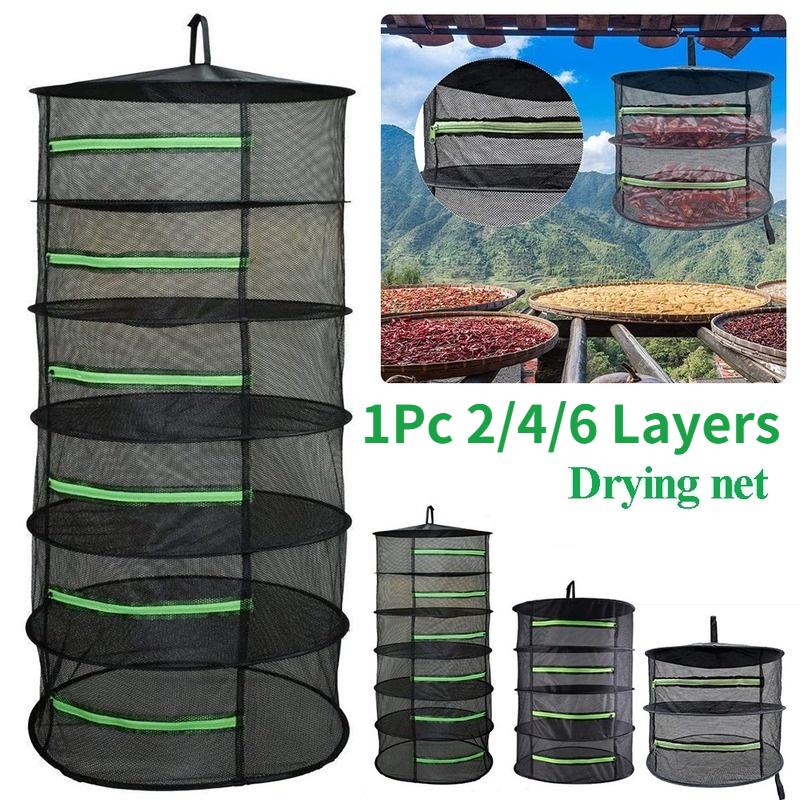 1Pc 2/4/6 Layers Drying Net for Herbs Hanging Basket Folding Dry Rack Herb Drying Net Dryer Bag Mesh For Flowers Buds Plants Organizer