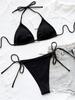 5 Renkler Halter Strappy Nervürlü Bikini Kadın Mayo Kadın Mayo İki parçalı Bikini seti Yüzücü Mayo Yüzmek Bayan