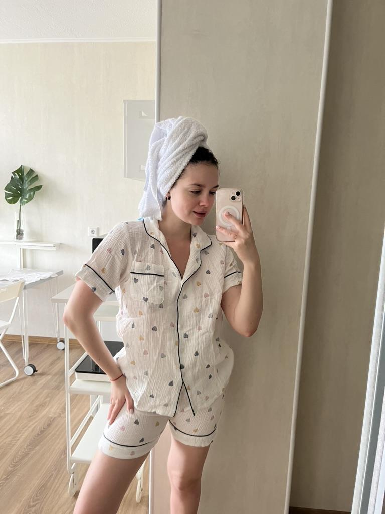 Japon yaz yeni bayanlar pamuklu gazlı bez kısa kollu şort pijama takım elbise sevimli kalp şeklinde ince kesit ev hizmeti takım elbise kadın